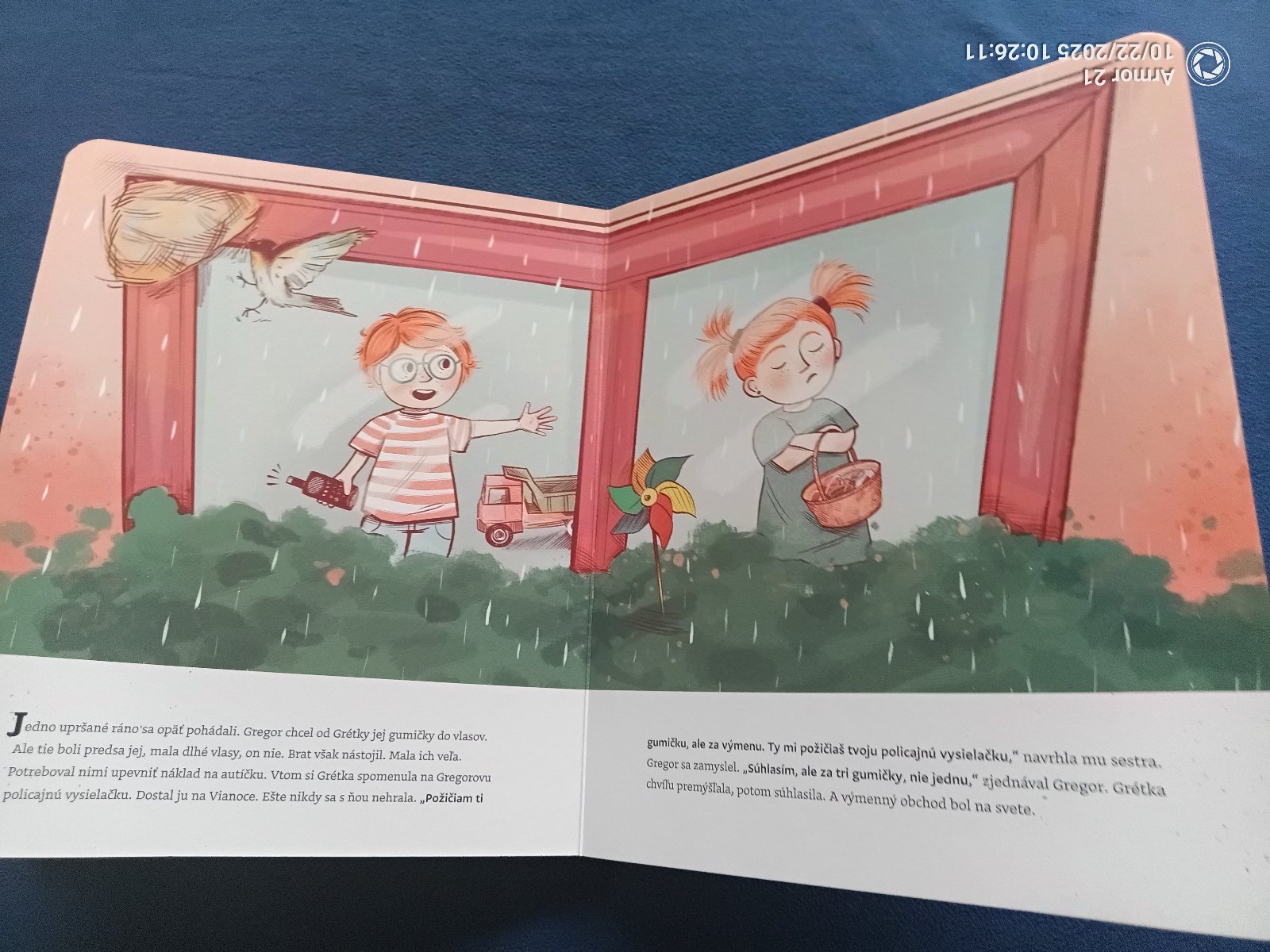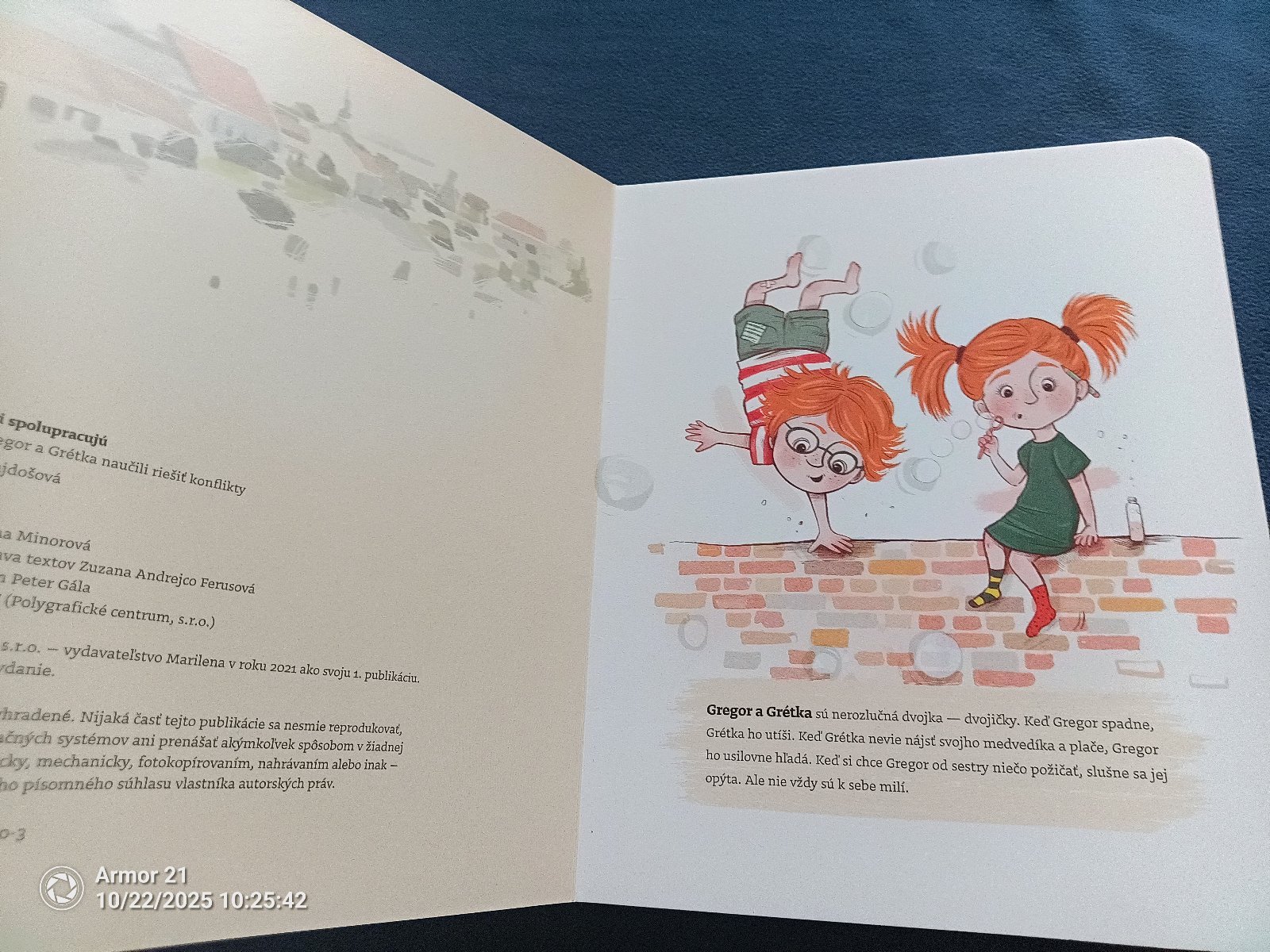 Gregor a Grétka sú nerozlučná dvojka dvojičky. Aj keď si veľa pomáhajú, vedia sa aj riadne pohádať. Či už o hračky, alebo o to, kto pôjde ako prvý na jedinú hojdačku na ihrisku. Riešeniami ich konfliktov ich najprv sprevádzajú mama a otec. Pomáhajú si presýpacími hodinami, hodom mince či kreslením. A keď Gregor Grétke nepožičia svoj meč, ona si skrátka vyrobí svoj vlastný, originálny. Napokon má mama takú dôveru vo svoje deti, že ich nechá, aby si škriepky riešili samy. Zvládnu to aj bez jej pomoci? A čo vy? Čo by ste poradili Gregorovi a Grétke pri ich hádkach? Dokážete sa u vás doma inšpirovať ich príbehmi? A čo robiť, keď dohody niet? Vydajte sa s dvoma huncútmi na cestu k väčšej rodinnej pohode!