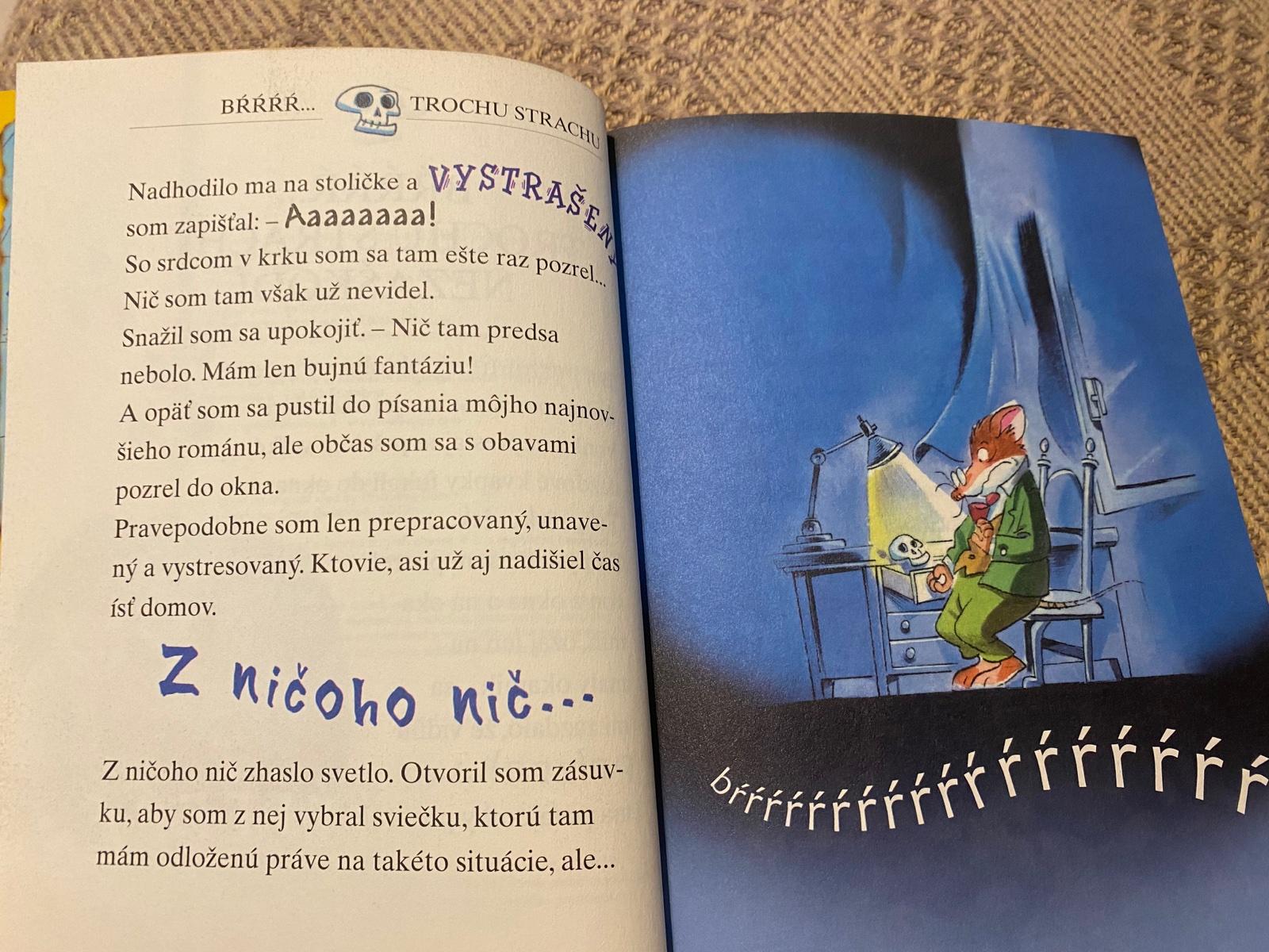 Poznám očarujúcu myšku, ktorá býva na cintoríne a vozí sa na pohrebnom voze... Som nútený zúčastniť sa halloweenskej oslavy s hororovým jedálnym lístkom...až hlodavca riadne strasie! V knihe nájdete aj skvelé návody na zorganizovanie superhalloweenskej oslavy!"