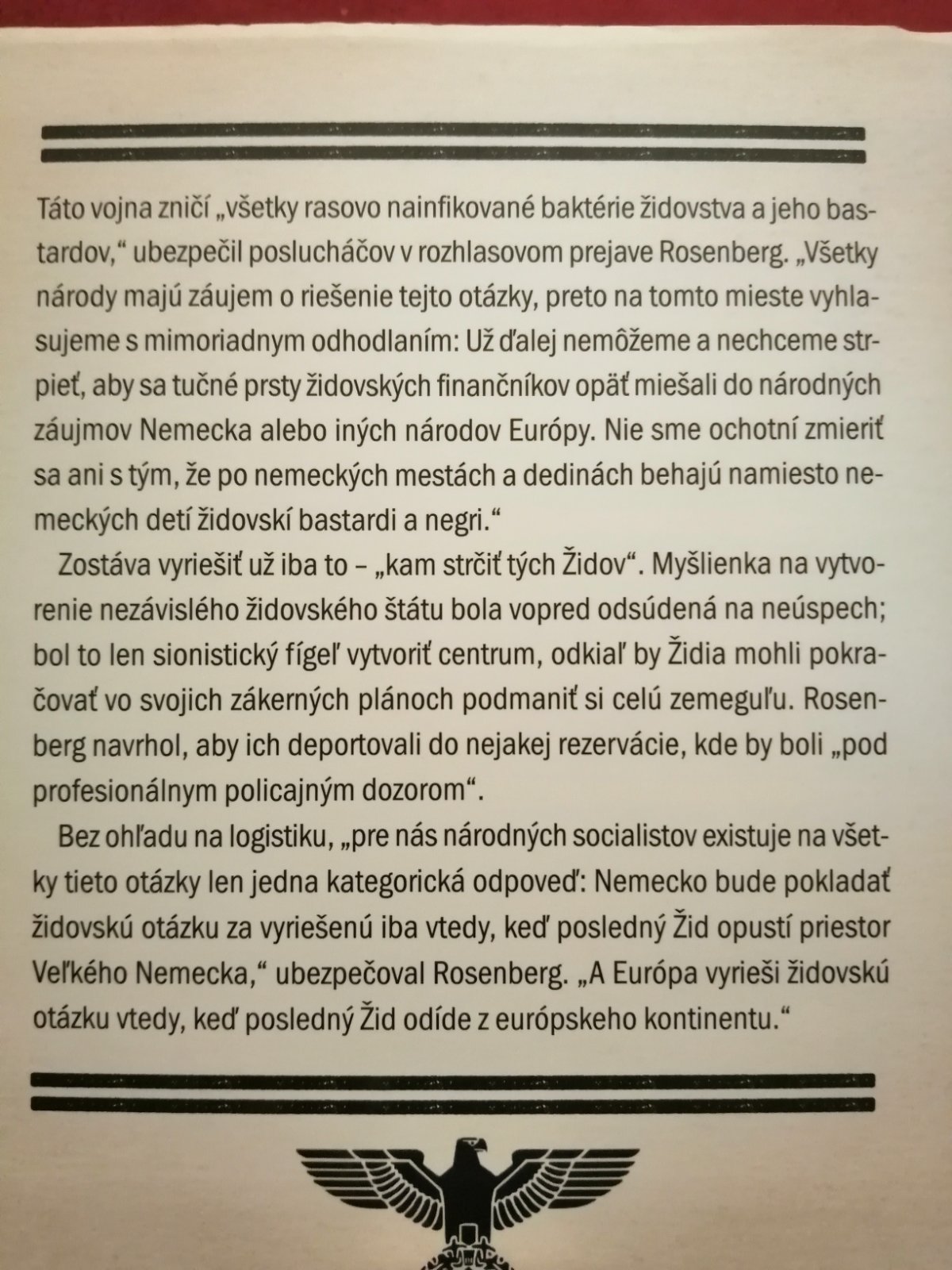 Alfred Rosenberg patril od samého začiatku do najužšieho okruhu Hitlerových spolupracovníkov. Meno si získal jedovatými teóriami o Židoch, ktoré šíril po celom Nemecku. Už v ranom období Tretej ríše sa jeho dielo Mýtus 20. storočia stalo najpredávanejšou knihou v krajine a bolo „skúšobným kameňom“ nacistického myslenia..