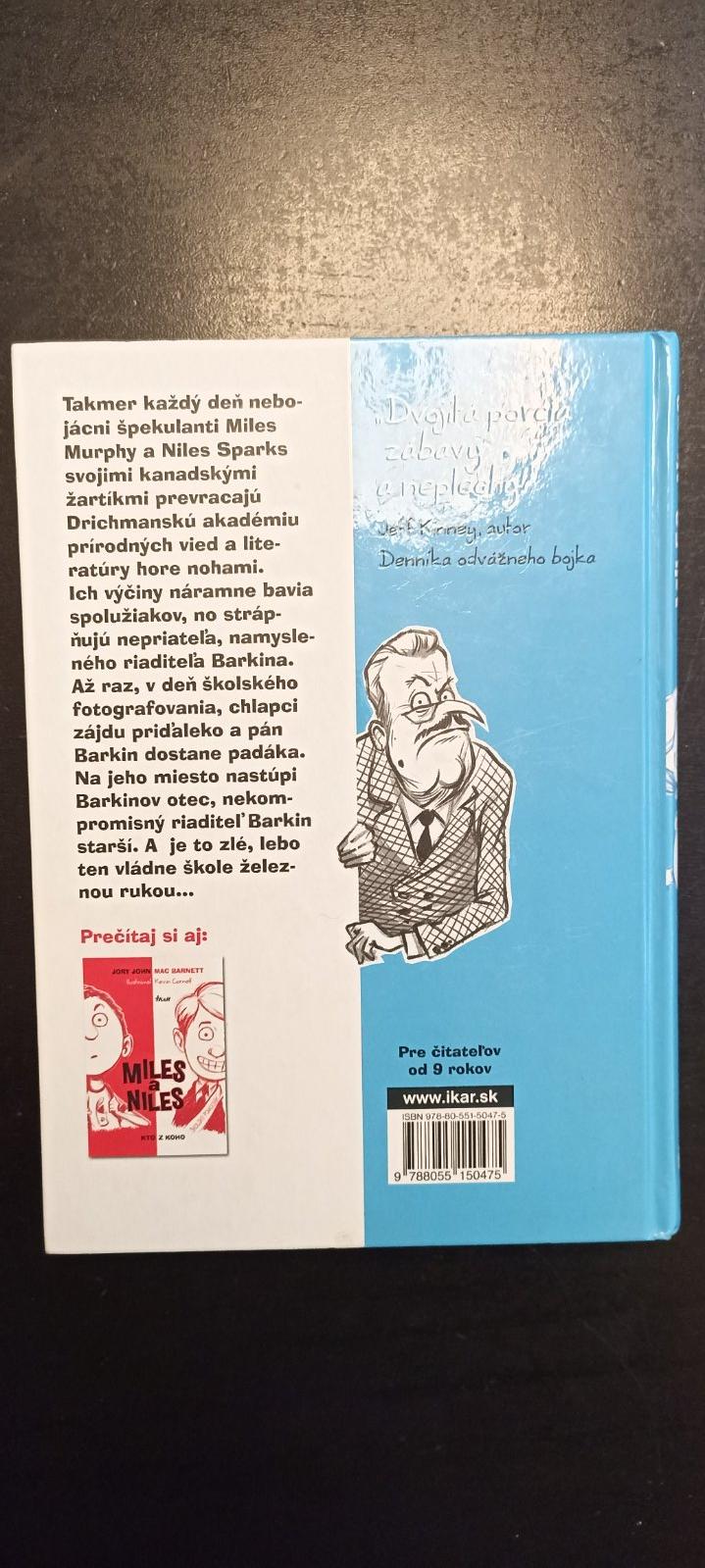 Takmer každý deň nebojácni špekulanti Miles Murphy a Niles Sparks svojimi kanadskými žartíkmi prevracajú Drichmanskú akadémiu prírodných vied a literatúry hore nohami. Ich výčiny náramne bavia spolužiakov, no strápňujú nepriateľa, namysleného riaditeľa Barkina. Až raz, v deň školského fotografovania, chlapci zájdu priďaleko a pán Barkin dostane padáka. Na jeho miesto nastúpi Barkinov otec, nekompromisný riaditeľ Barkin starší. A je to zlé, lebo ten vládne škole železnou rukou...