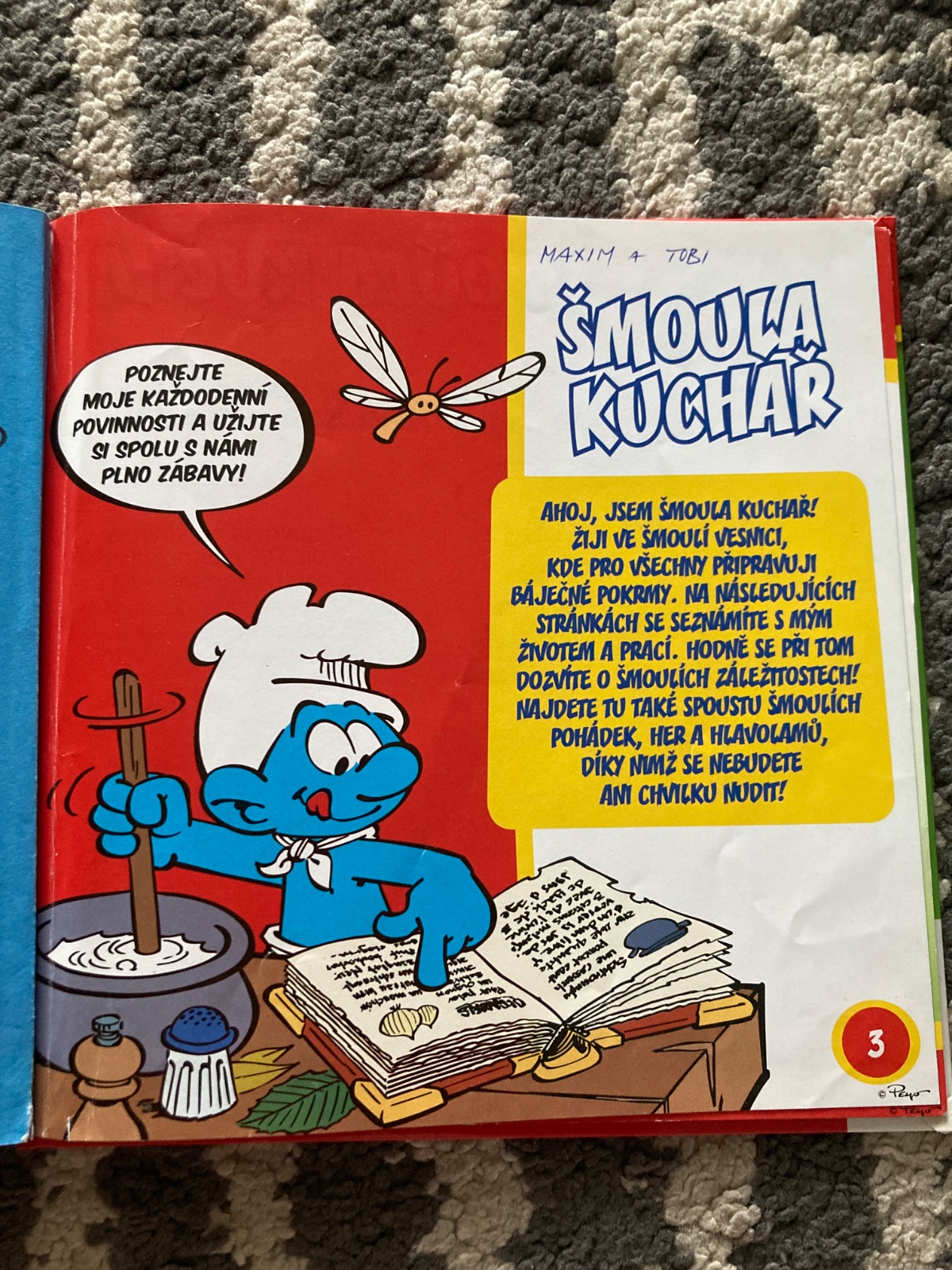 Ahoj, jsem šmoula Kuchař! Žiji ve šmoulí vesnici, kde pro všechny připravuji báječné pokrmy...