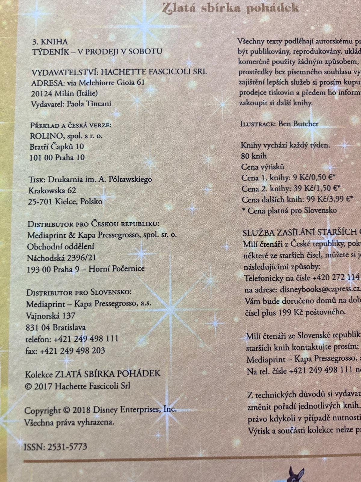 🔹Kniha Zlatá sbírka pohádek 3: Kniha džunglí z roku 2017 je součástí populární ediční řady Disneyho příběhů, kterou v České republice vydalo nakladatelství Hachette.