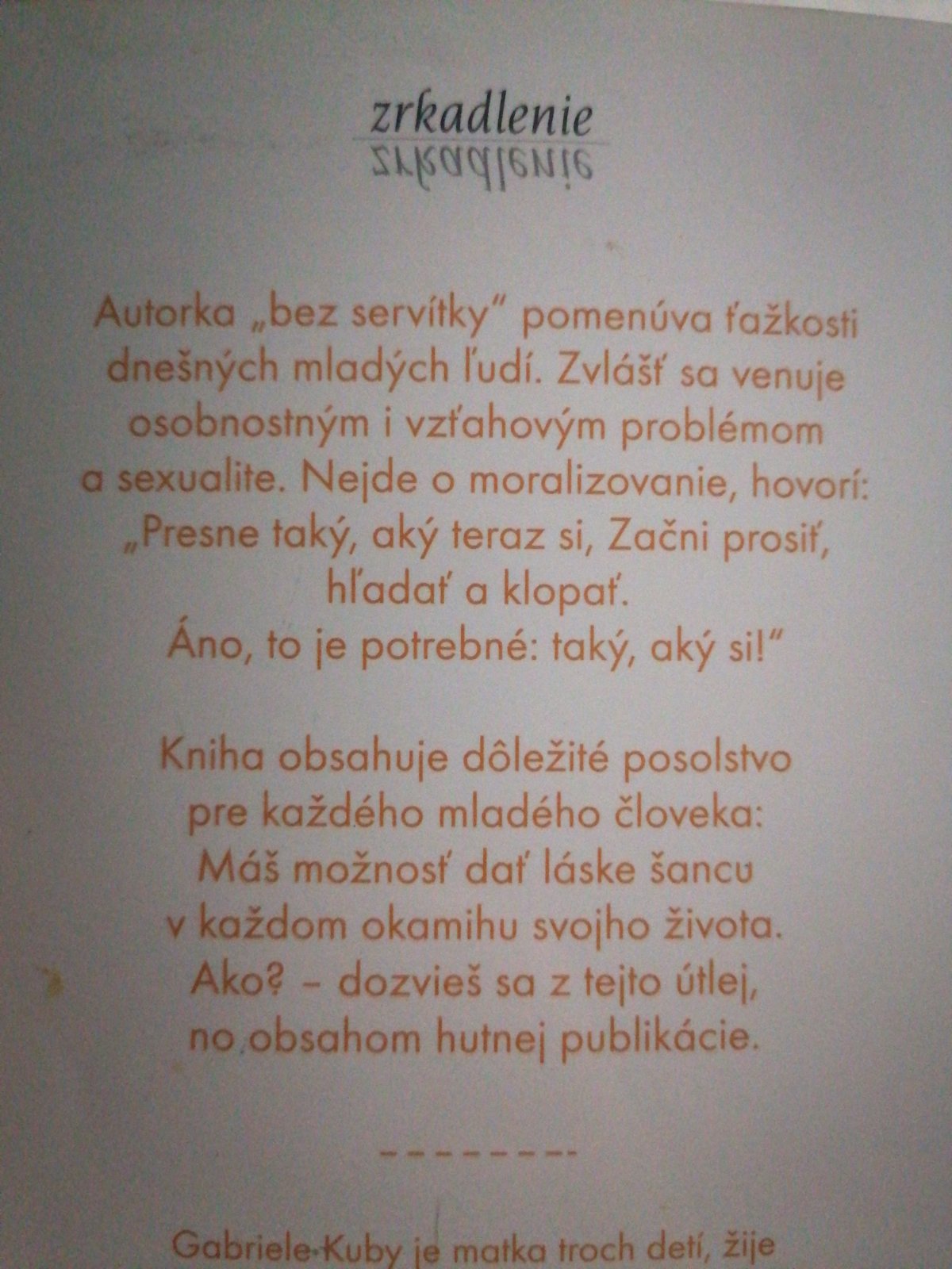 Predám knihu Daj láske šancu od Gabriele Kuby, vydavateľstvo Lúč. Stav, ako nová. Cena 3 € plus poštovné alebo osobný odber v BA.