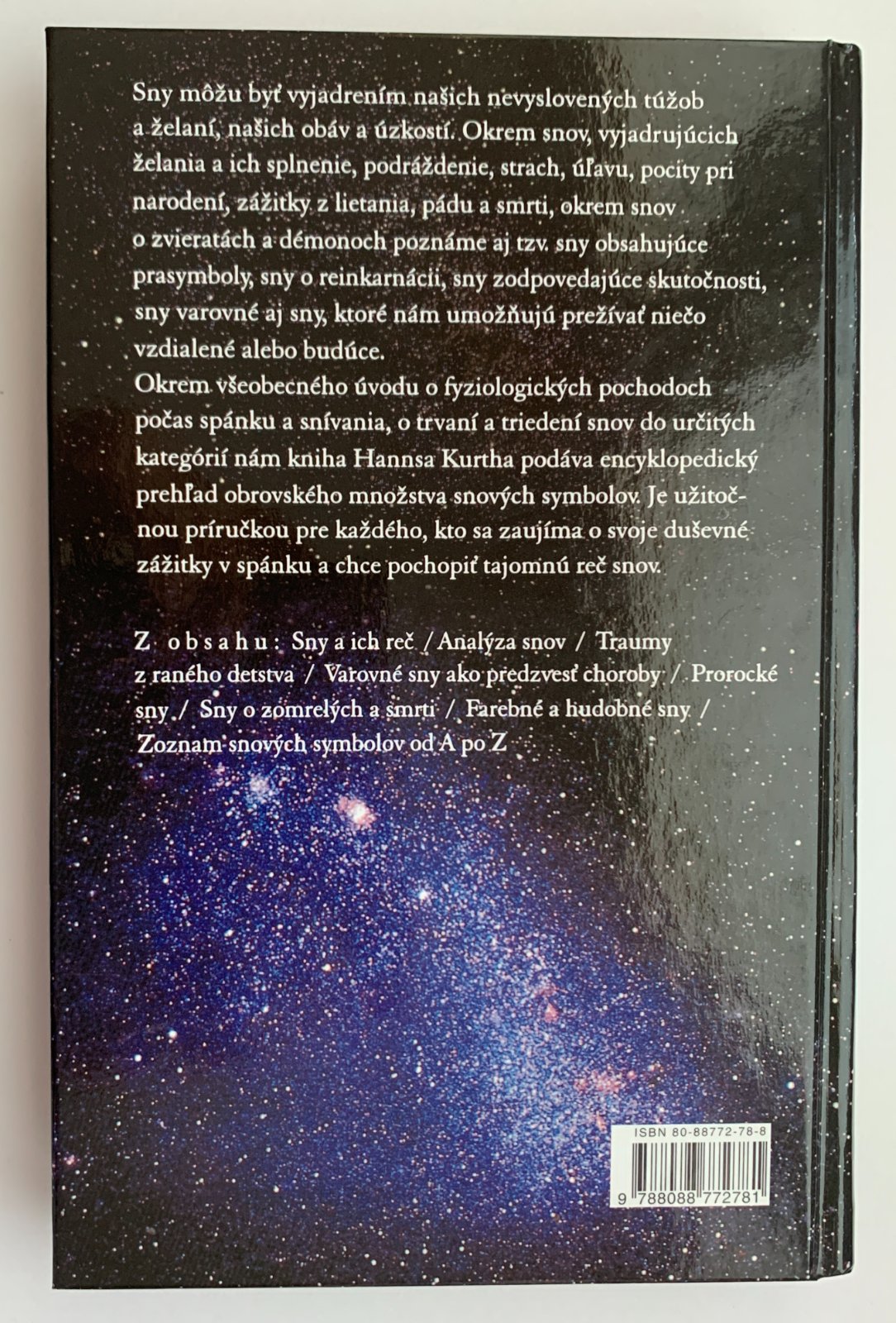 Sny môžu byť vyjadrením našich nevyslovených túžob a želaní, našich obáv a úzkostí. Okrem snov, vyjadrujúcich želania a ich splnenie, podráždenie, strach, úľavu, pocity pri narodení, zážitky z lietania, pádu a smrti, okrem snov o zvieratácha a démonoch poznáme aj tzv. sny obsahujúce prasymboly, sny o reinkarnácii, sny zodpovedajúce skutočnosti, sny varovné aj sny, ktoré nám umožňujú prežívať niečo vzdialené alebo budúce. Okrem všeobecného úvodu o fiziologických pochodoch počas spánku a snívania, o trvaní a triedení snov do určitých kategórií nám kniha Hannsa Kurtha podáva encyklopedický prehľad obrovského množstva snových symbolov. Je užitočnou príručkou pre každého, kto sa zaujíma o svoje duševné zážitky v spánku a chce pochopiť tajomnú reč snov.