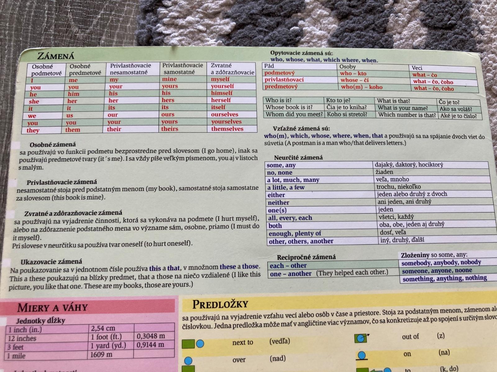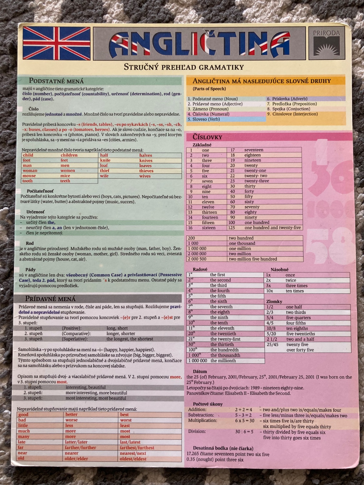 Prehľady gramatiky spracované vo forme tabuľky na rýchlu orientáciu a jednoduché použitie.