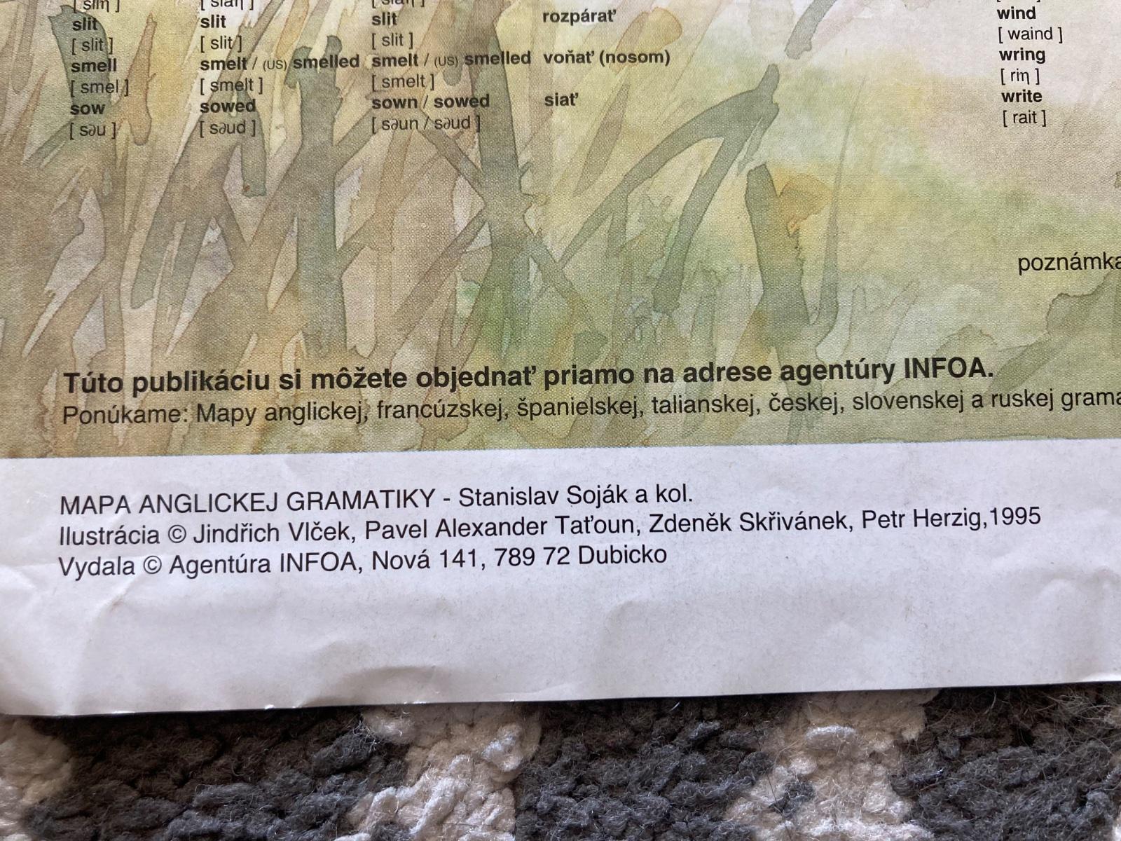 Tabuľka so stručným prehľadom gramatiky z anglického jazyka.