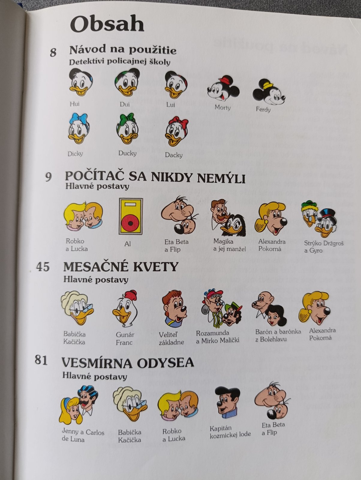 Túto zvláštnu knihu možno čítať dvojakým spôsobom. Kto sa chce len pobaviť, nájde tu tri trošku zábavné a trošku záhadné detektívne príbehy, v ktorých vystupujú známe kreslené postavičky gunár Franc, babička Kačička či Gyro. No pre každého, kto sa chce na dobrodružstvách zúčastniť spolu s komisárom Hunterom a so žiakmi z jeho detektívnej školy, je to aj príručka metód pátrania.