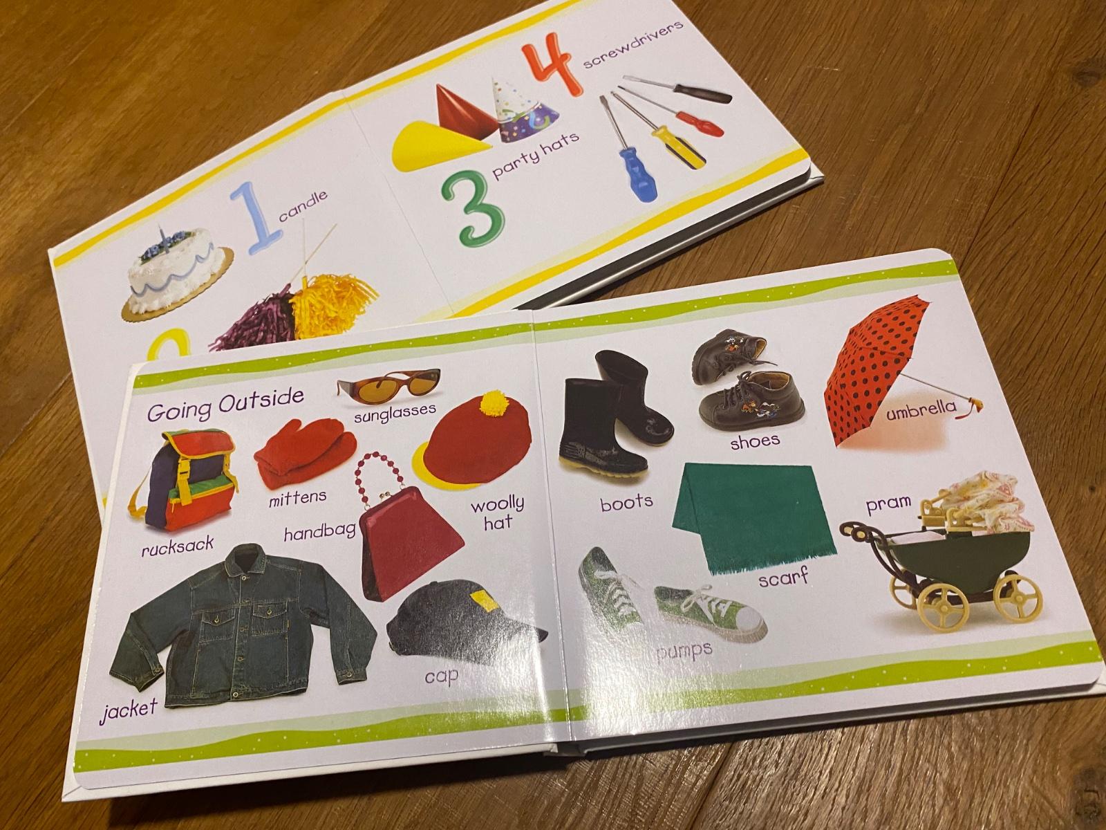 Tieto krásne ilustrované knihy sú ideálne pre malé deti, ktoré sa začínajú učiť prvé slová a čísla v angličtine. Knihy sú plné pestrofarebných obrázkov a jednoduchých výrazov, ktoré deťom pomôžu objavovať základné pojmy.