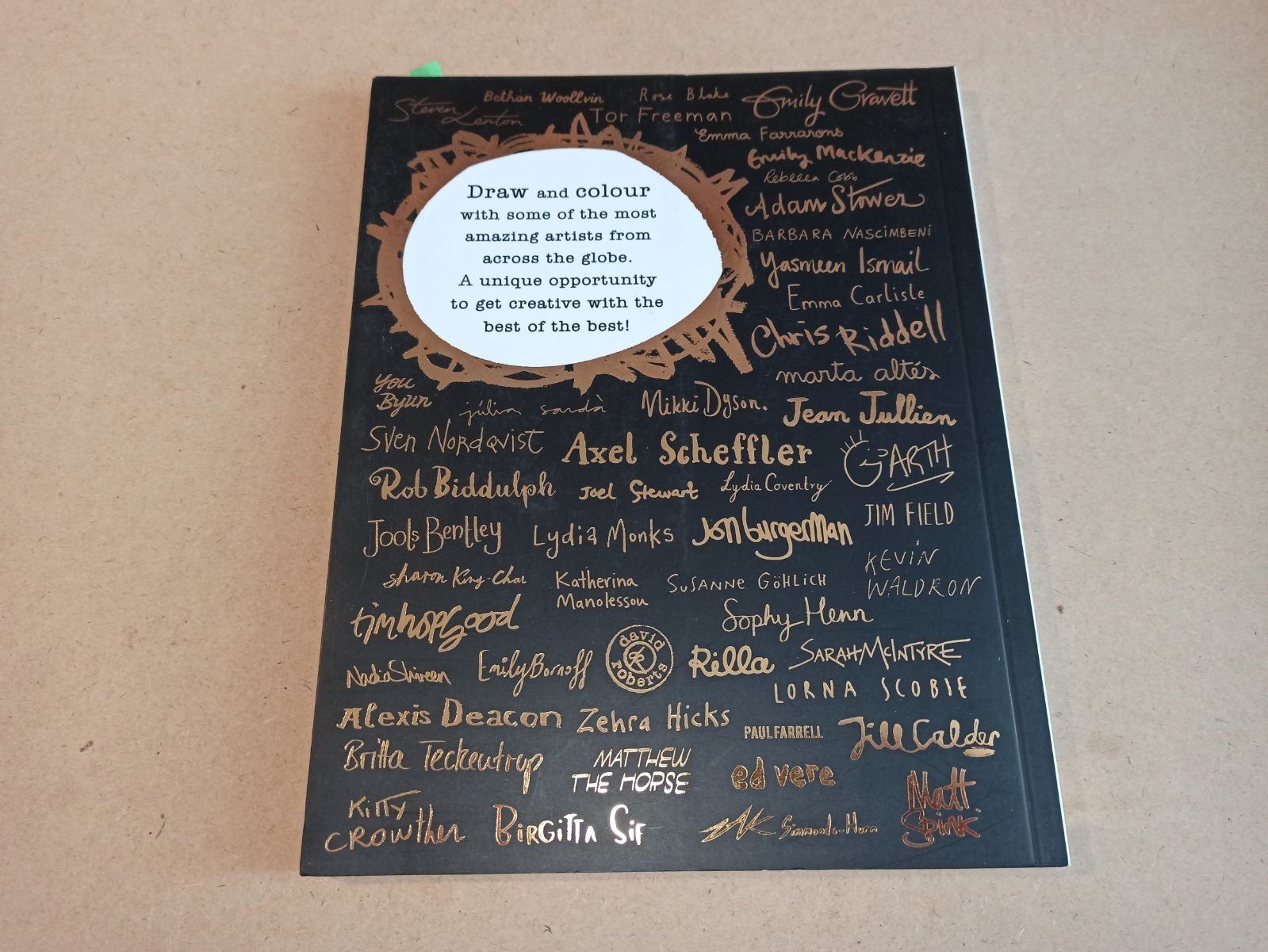 V knihe su cierno-biele kresby / ilustracie od Tima Hopgooda, Emily Gravett, Alexa Schefflera, Lydie Monks a inych. Mena su vypisane na tej zelenej serpe, je to vlastne papierova stuha, da sa zlozit z knihy.