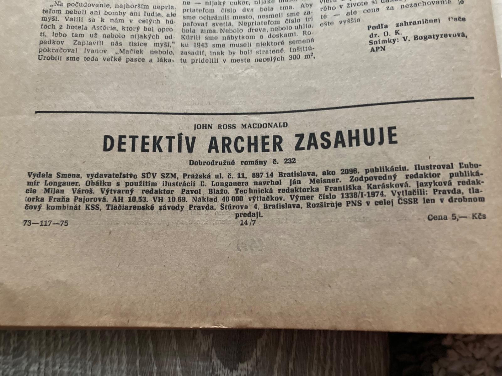 Tri krimi poviedky s detektívom Lew Archerom – Bradatá dáma, Karta v rukáve, Neblahý návyk, ktoré vybrali editori zbierky z originálnej zbierky „The Name Is Archer“.