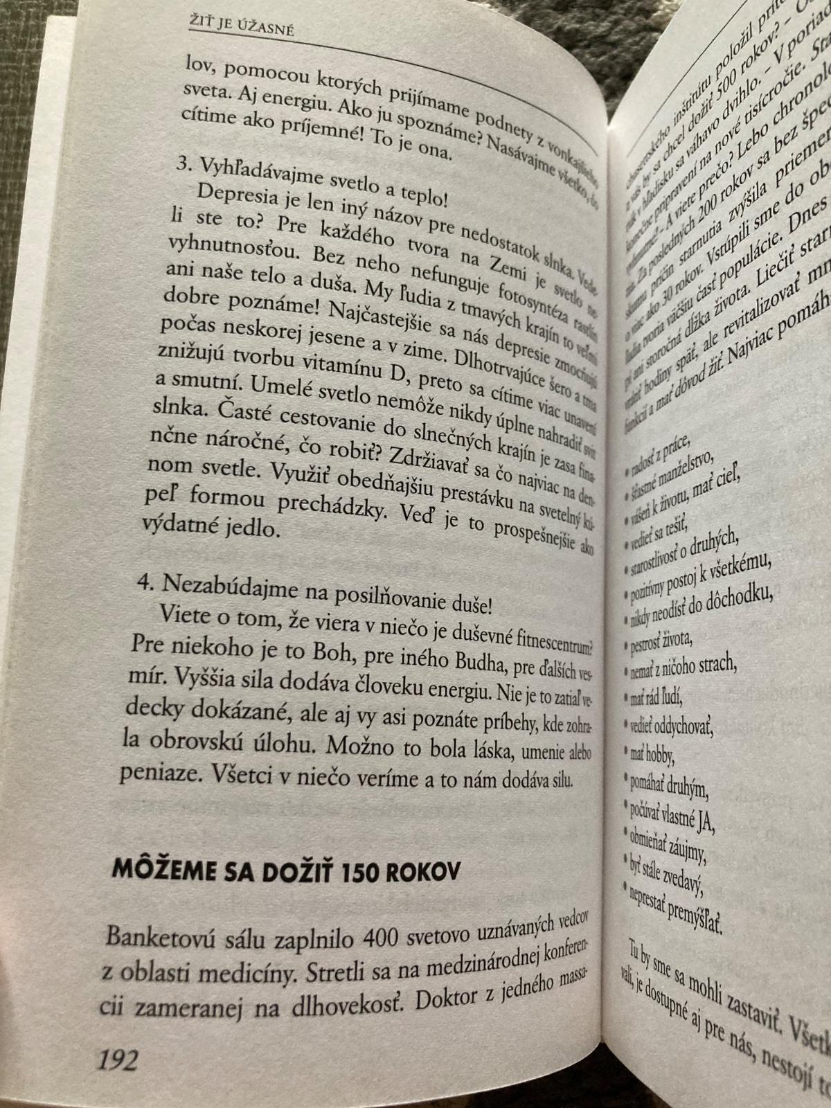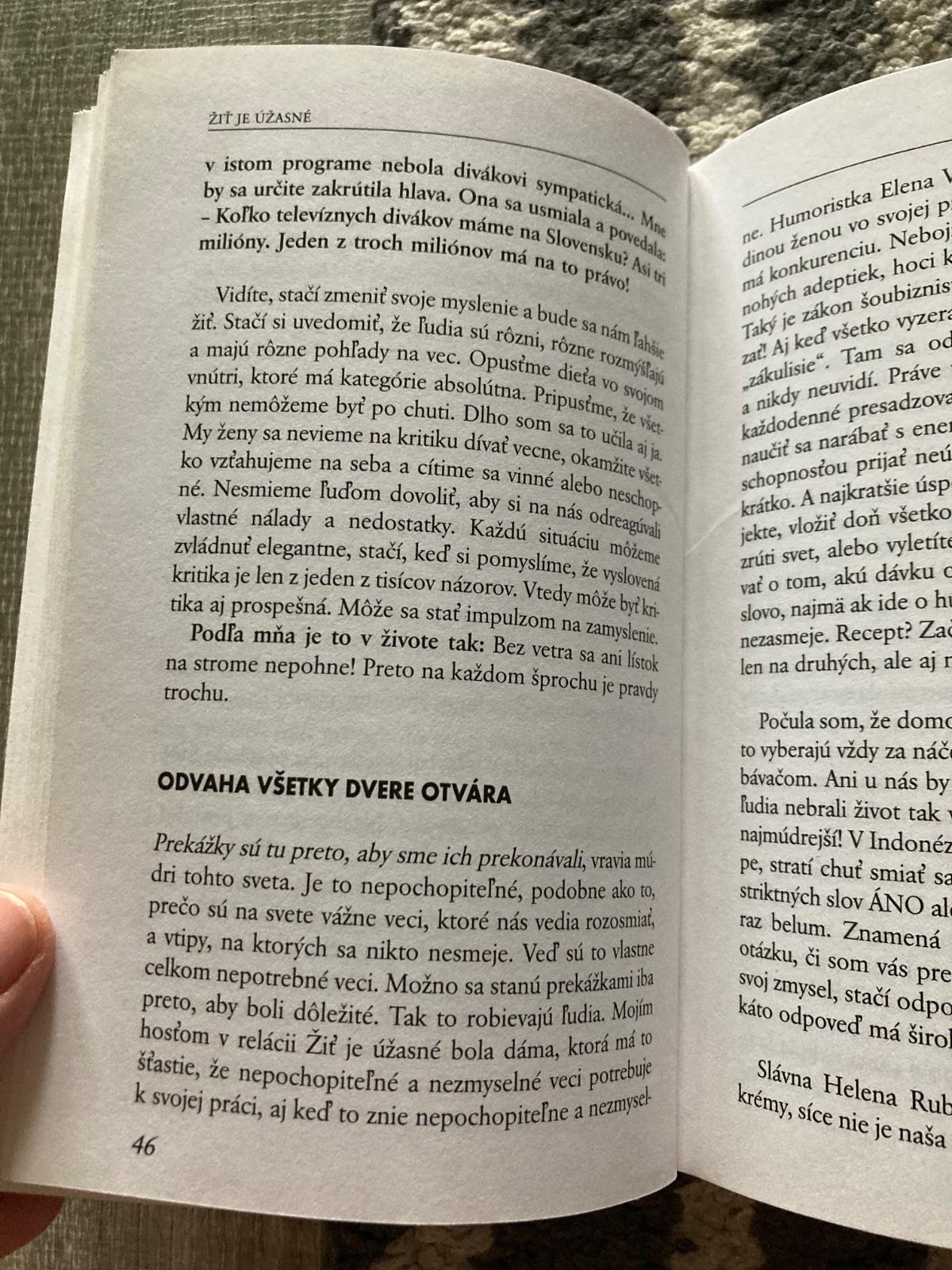 Aj v tejto knihe má, predovšetkým ženám, čo povedať. Analyzuje ľudské osudy z hľadiska modernej filozofie, vlastnej skúsenosti, ale i dávnych povier a tradícií. Jej viera v silu a nádej pre človeka je neotrasiteľná: Napriek všetkému – Žiť je úžasné! Emma Tekelyová nezabúda ani na pravidlo, ktoré rád zdôrazňoval už A.P. Čechov: Človek má byť pekný nielen dušou, ale i svojím zovňajškom. Každá z nás sa môže stať osobnosťou, život je naozaj jedinečný a neopakovateľný dar.
