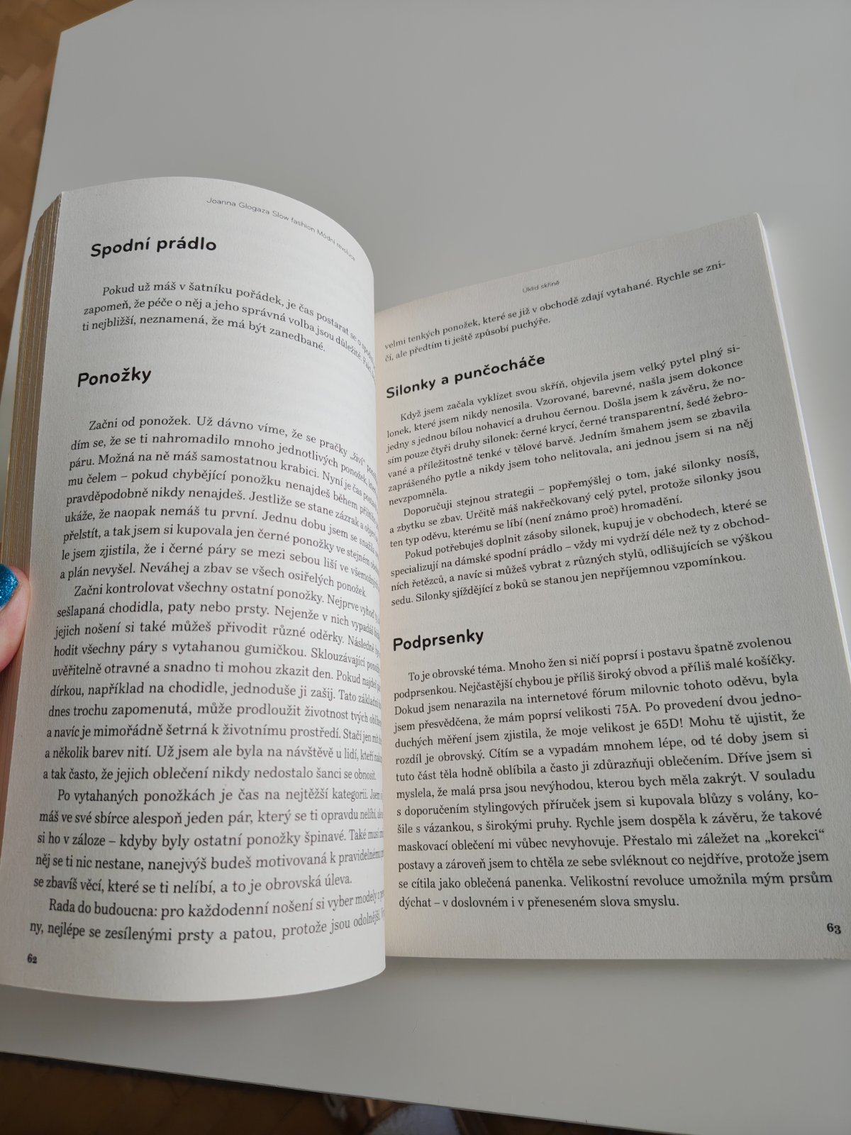 Jako reakce na jeden z problémů dnešní doby, takzvanou fast fashion (= spotřební, nekvalitně ušitá, jednosezónní móda, často ušitá ve vykořisťujících podmínkách, nezřídka za využití dětské práce někde ve třetím světě) narůstá stále větší počet příznivců slow fashion (= kvalitní, etické, udržitelné módy, oblečení se stává investicí a spotřebitelé svým nákupem dávají hlas více férovému a udržitelnějšímu způsobu života).Kniha obsahuje: tipy na vytvoření udržitelného šatníku tipy, jak poznat kvalitní oblečení rady, jak nakupovat v second-handech rozhovor s dámskou krejčovou o úpravách oblečení tipy, jak o oblečení pečovatNa obálku knihy je použitý papír Mohawk = papír vyrobený za využití větrné energie.