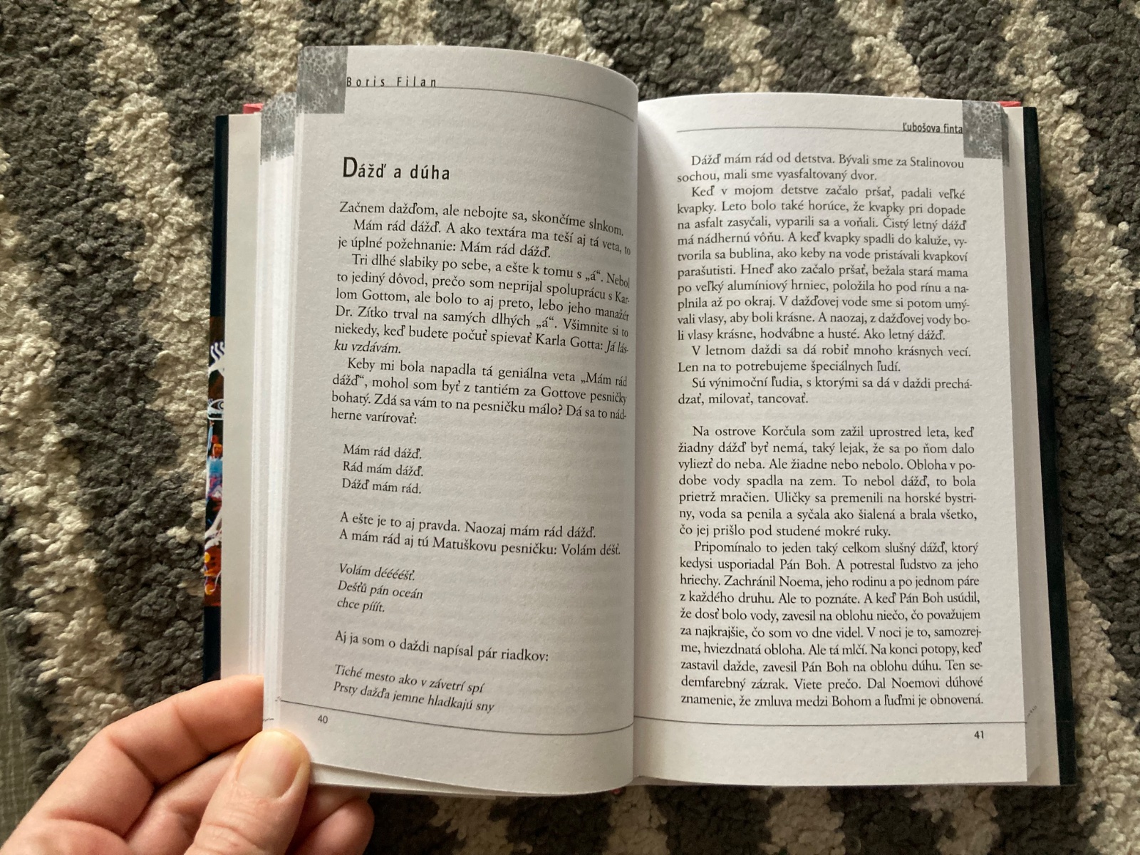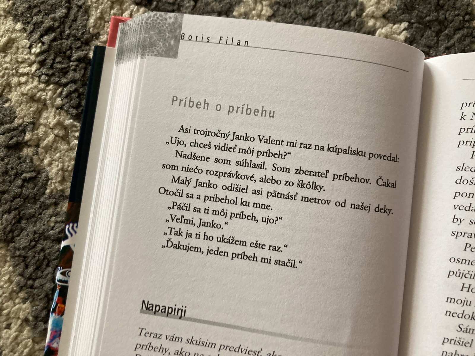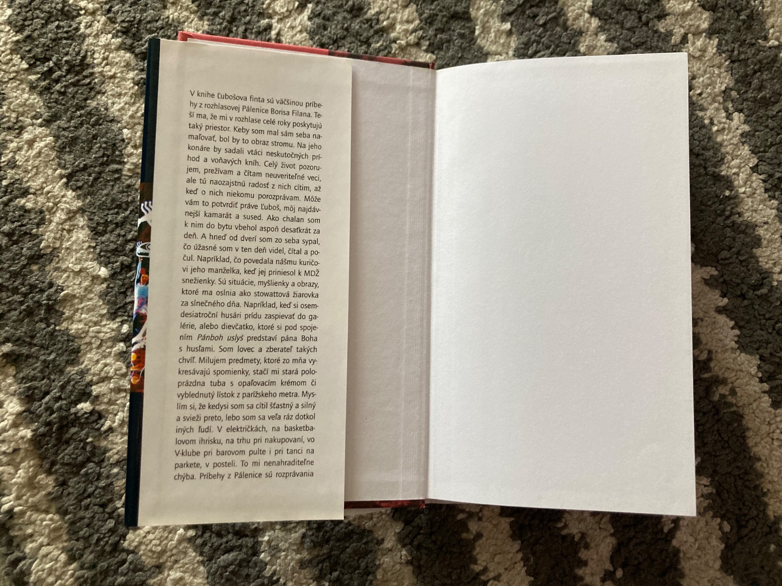 📌V knihe Ľubošova finta ŠÚ vacsinou príbehy z rozhlasovej Pálenice Borisa Filan. Teší ma, že mi v rozhlase celé roky poskytujte taký priestory. Keby som mal sám seba namaľovať, bol by to obraz stromu. Na jeho Konaré by sadali vtáci neskutočných príhod a voňavých kníh. Celý život pozorujte, prežívajú a čítam neuveriteľné veci, ale tú naozajstnú radosť z nich cítim, až ked o nich niekomu porozprávam. Môžem vám to potvrdiť právo Ľuboš, môj najdávnejší kamarát a sused. Ako chalan som k nim do bytu vbehol aspoň desaťkrát za deň. A hneď od dverí som zo seba sypal, čo úžasné som v ten deň videl, čítal a pocul. Napríklad, čo povedala nášmu Kuric jeho manželka, ked ho priniesol k MDŽ snežienky. Sú situáciám, myšlienky a obrazy, ktore ma oslníte ako stowatová žiarovka za slnečného dňa.