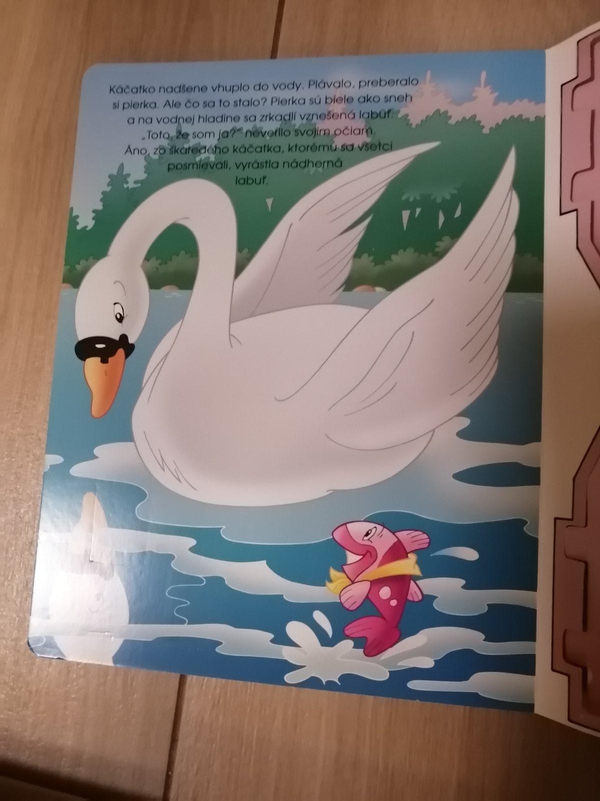 Klasická rozprávka Škaredé káčatko, ktoré sa nakoniec premení na krásnu labuť.