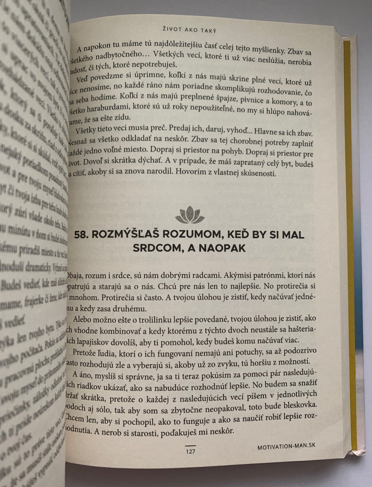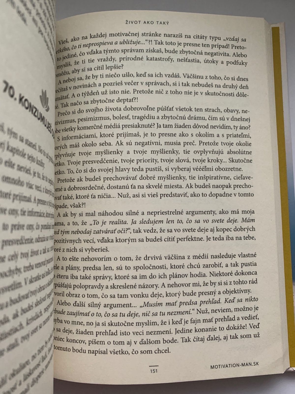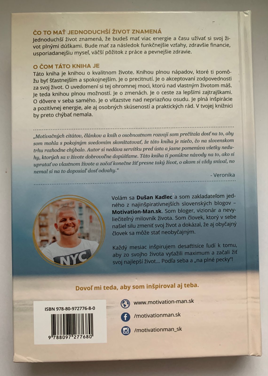 Táto kniha je knihou o kvalitnom živote. Knihou plnou nápadov, ktoré ti pomôžu byť šťastnejším a spokojnejším. Je o precitnutí. Je o akceptovaní zodpovednosti za svoj život. O uvedomení si tej ohromnej moci, ktorú nad ním vlastne máš.