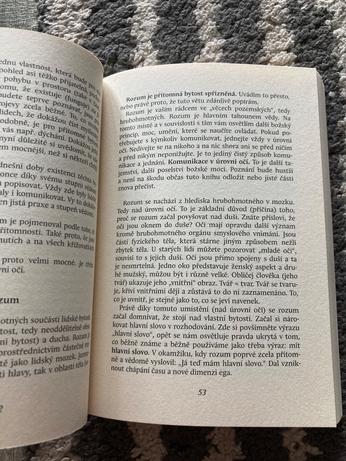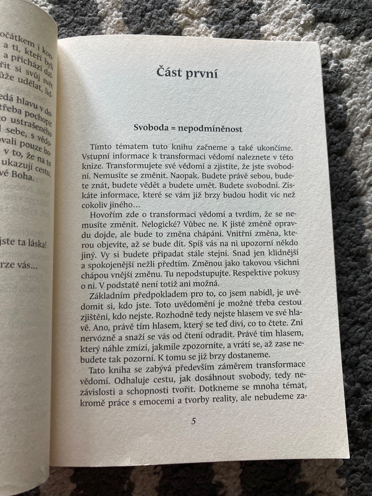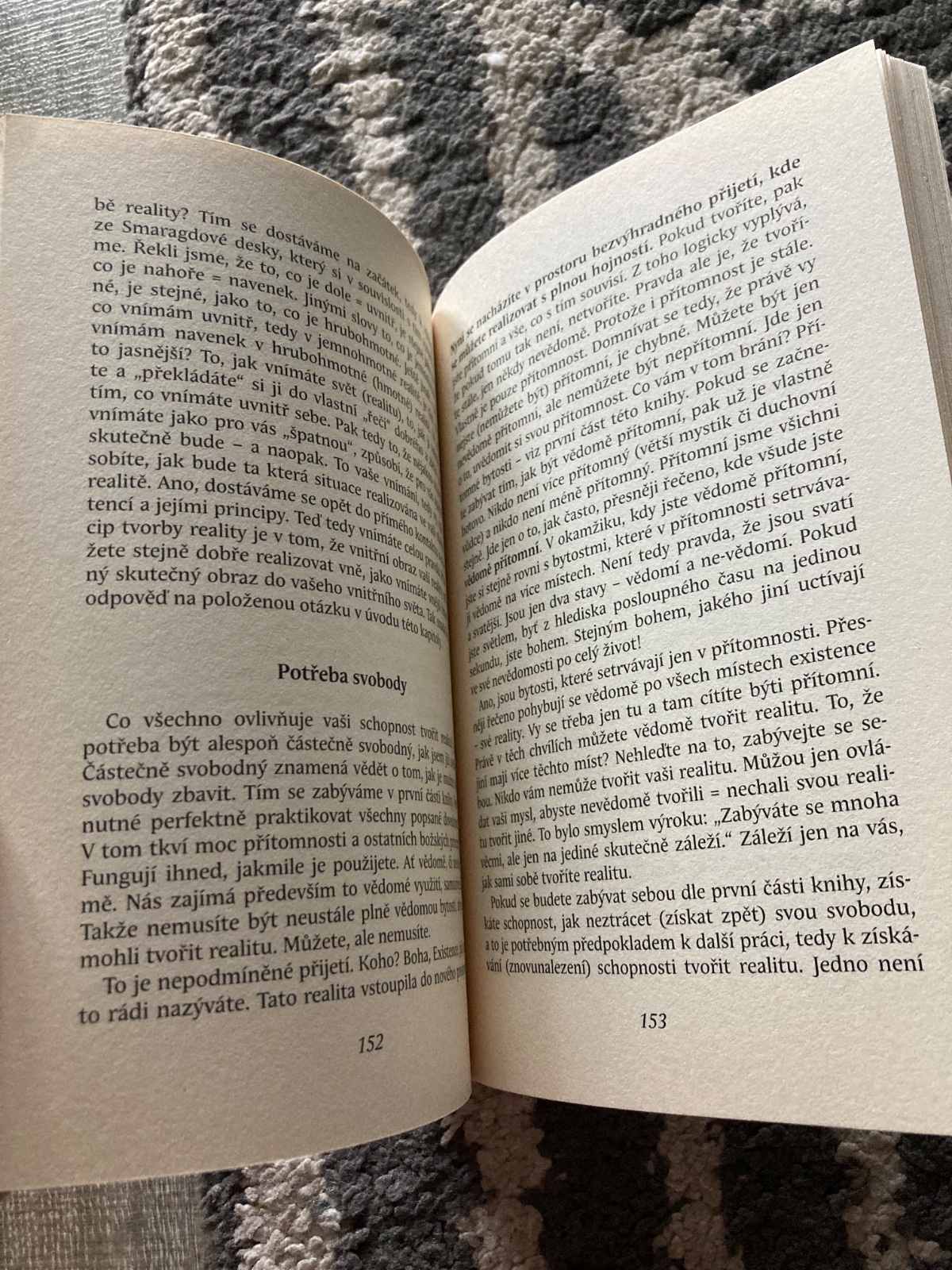 První část se zabývá emocemi, přítomností a způsoby jak pozorovat a porozumět té části reality, která je skrytá smyslovému vnímání, přesto přímo ovlivňuje životy lidí. Nabízí pro někoho nový pohled na svět, ale především popisuje způsob, jak konkrétní vlivy působící na lidskou bytost pozorovat, jak jim rozumět a jak se jimi nenechat ovlivňovat.