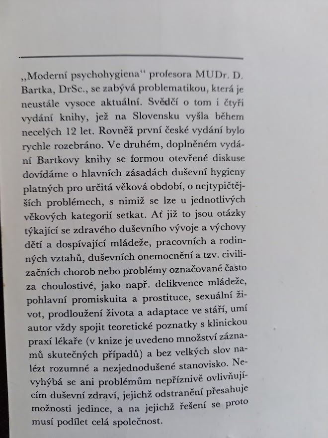Kniha v dobrom stave, rok vydania 1980. Duševná hygiena - tejto téme je venovaná táto kniha. Autor vychádza z predpokladu, že psychofyzický vývoj človeka sa dá ovplyvniť utvorením vhodných podmienok a vhodnými zásahmi z prostredia. Obsahuje 460 strán, väzba: brožovoná. Cena 1,50 €+poštovné