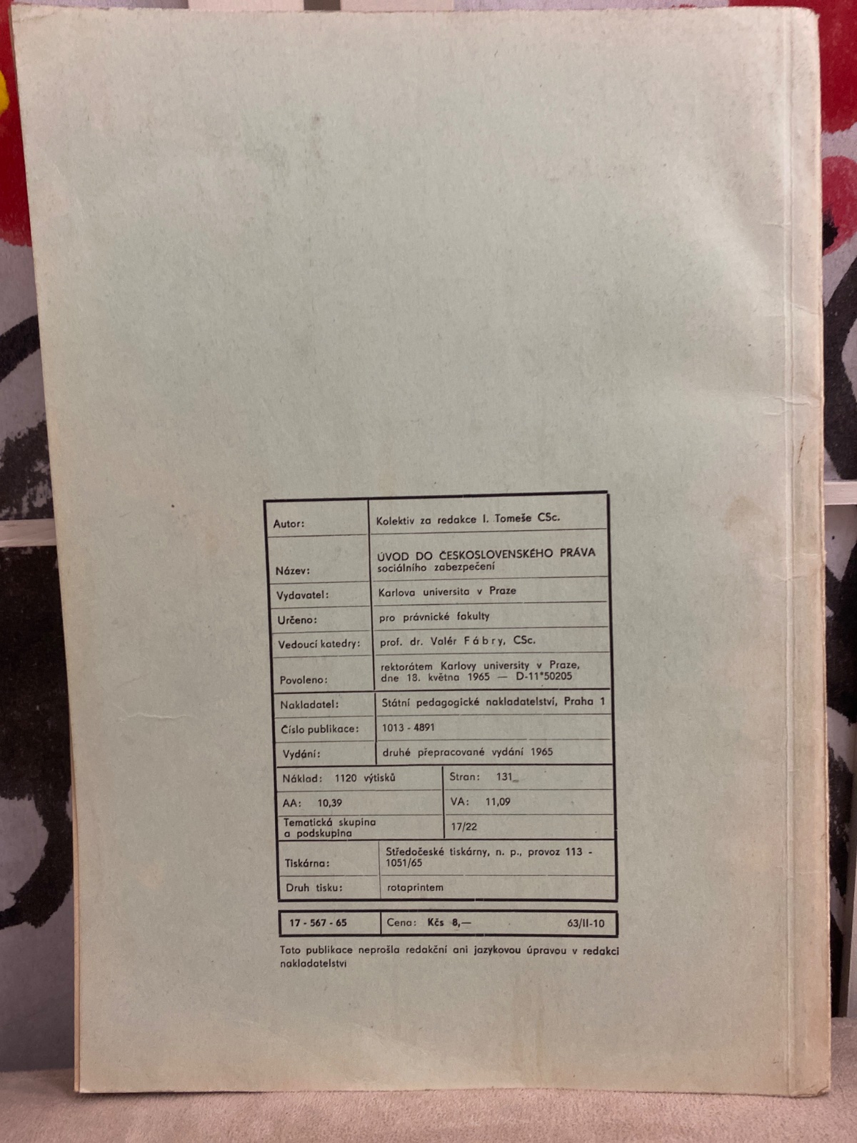 Publikácia „Úvod do československého práva sociálního zabezpečení“ je vysokoškolský učebný text určený pre študentov práva. Vydala ju Karlova univerzita v Praze – Právnická fakulta a obsahuje základný prehľad o systéme sociálneho zabezpečenia v Československo, jeho právnej úprave a fungovaní. Kniha bola vydaná v Praha vo vydavateľstve Státní pedagogické nakladatelství ako učebný materiál pre vysoké školy.