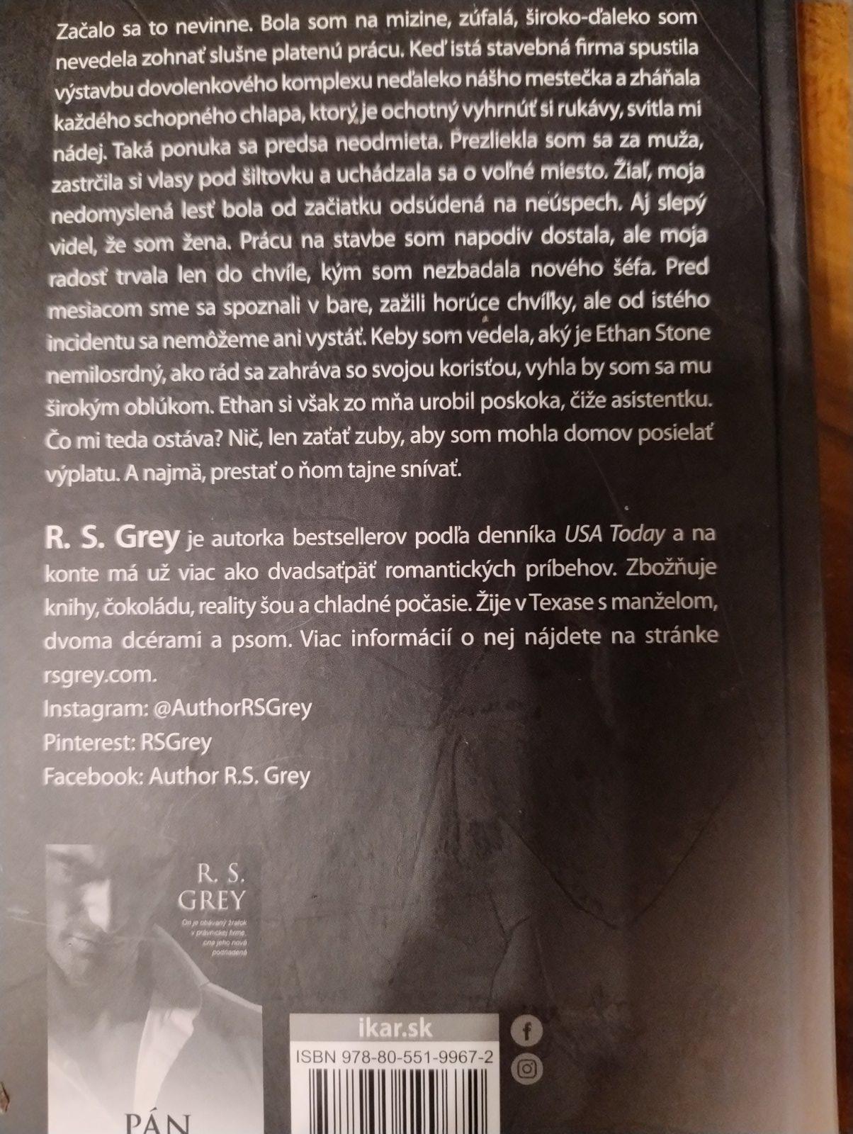 Keď istá stavebná firma spustila výstavbu dovolenkového komplexu neďaleko nášho mestečka a zháňala každého schopného chlapa, ktorý je ochotný vyhrnúť si rukávy, svitla mi nádej. Taká ponuka sa predsa neodmieta. Prezliekla som sa za muža, zastrčila si vlasy pod šiltovku a uchádzala sa o voľné miesto. Žiaľ, moja nedomyslená lesť bola od začiatku odsúdená na neúspech. Aj slepý videl, že som žena. Prácu na stavbe som napodiv dostala, ale moja radosť trvala len do chvíle, kým som nezbadala nového šéfa. Pred mesiacom sme sa spoznali v bare, zažili horúce chvíľky, ale od istého incidentu sa nemôžeme ani vystáť. Keby som vedela, aký je Ethan Stone nemilosrdný, ako rád sa zahráva so svojou korisťou, vyhla by som sa mu širokým oblúkom. Ethan si však zo mňa urobil poskoka, čiže asistentku. Čo mi teda ostáva? Nič, len zaťať zuby, aby som mohla domov posielať výplatu. A najmä, prestať o ňom tajne snívať.