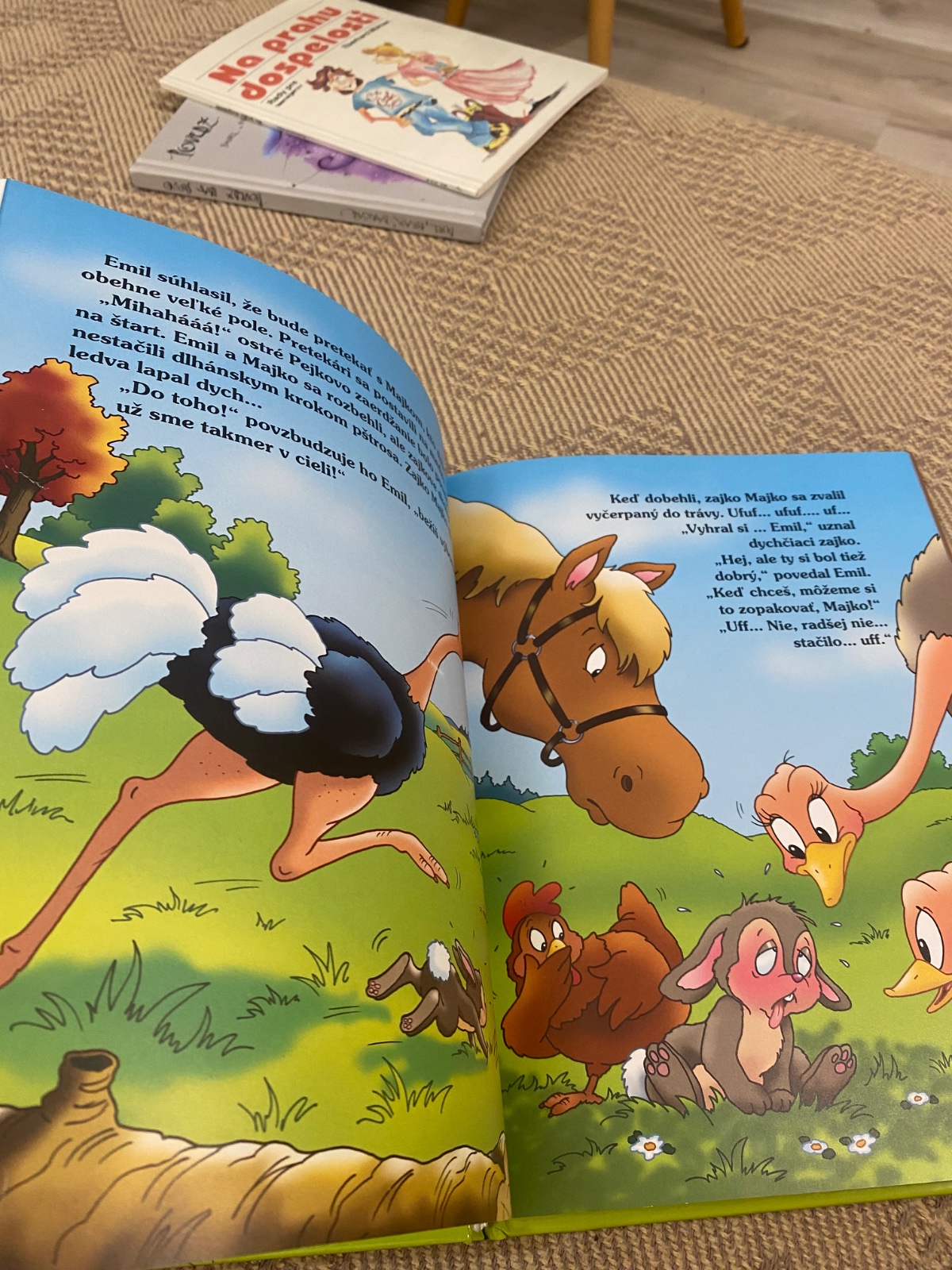 Deti, viete, čo je nové na gazdovskom dvore? Že nie? Tak vám teda prezradíme, že medzi zvieratká zavítali noví kamaráti – pštrosy Emka a Emil. Ak sa chcete dozvedieť, ako sa zoznámili s obyvateľmi gazdovského dvora, či to, ako im pomáhali pri záchrane strašiaka, začítajte sa do nových príbehov tejto rozkošne ilustrovanej knižky.