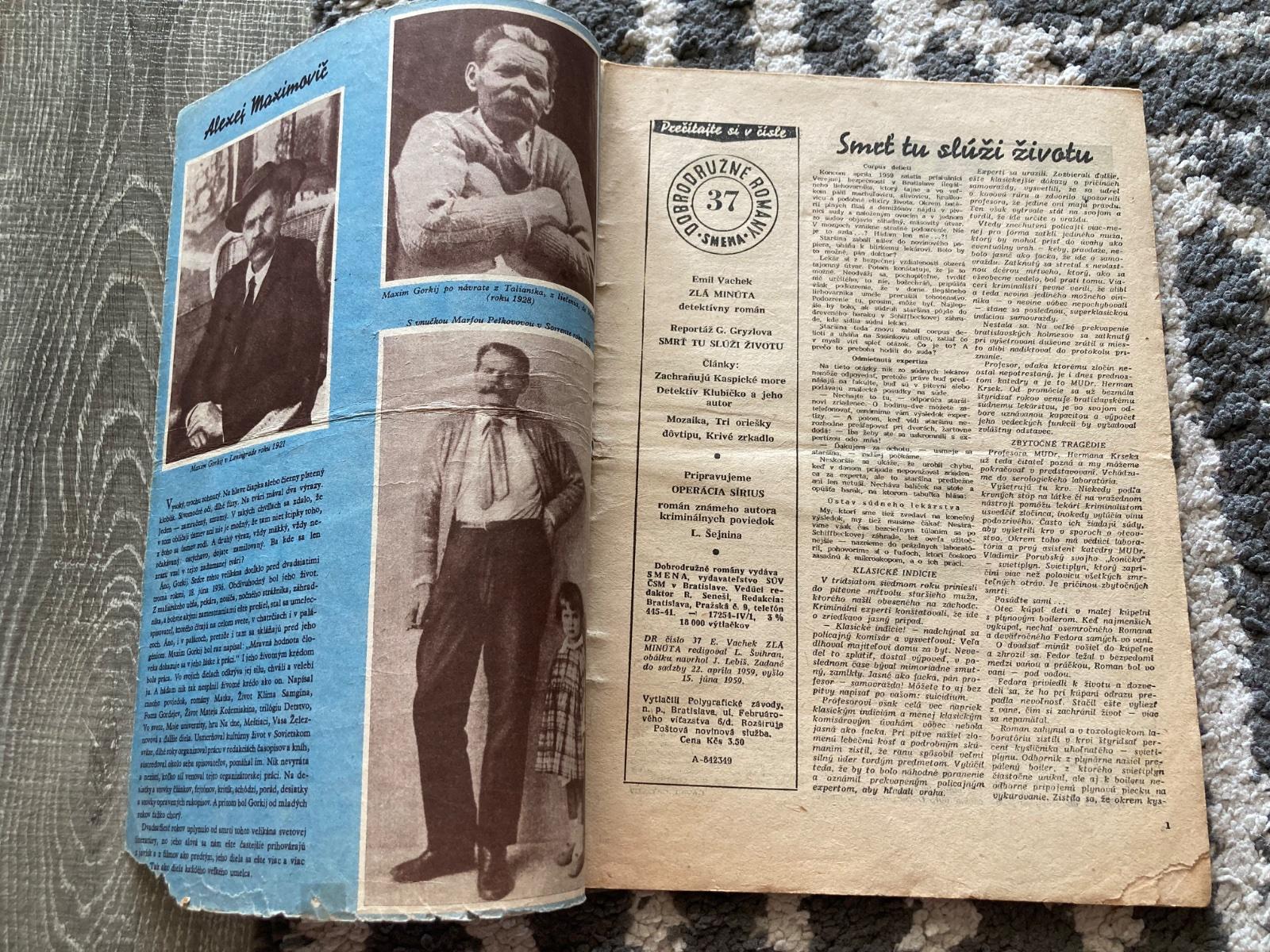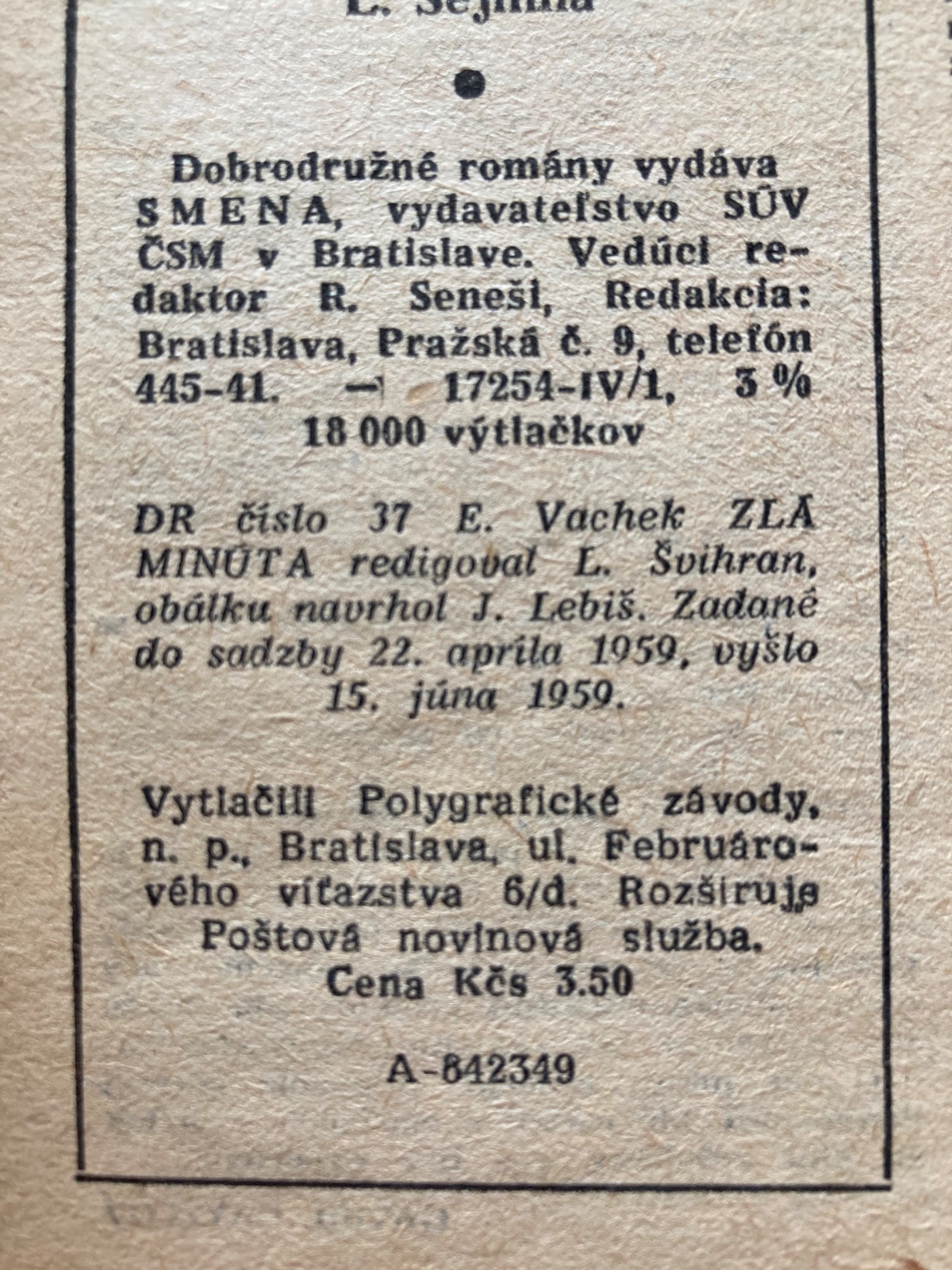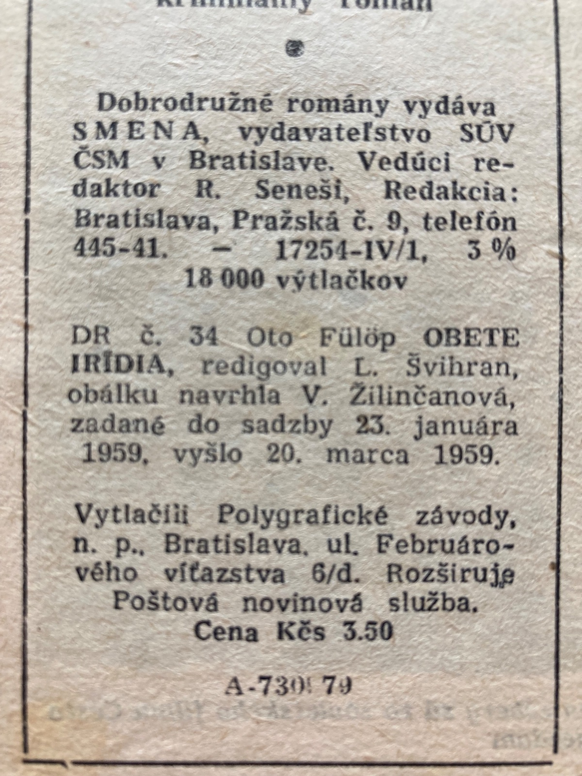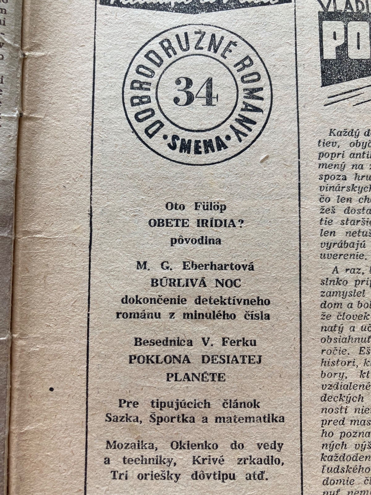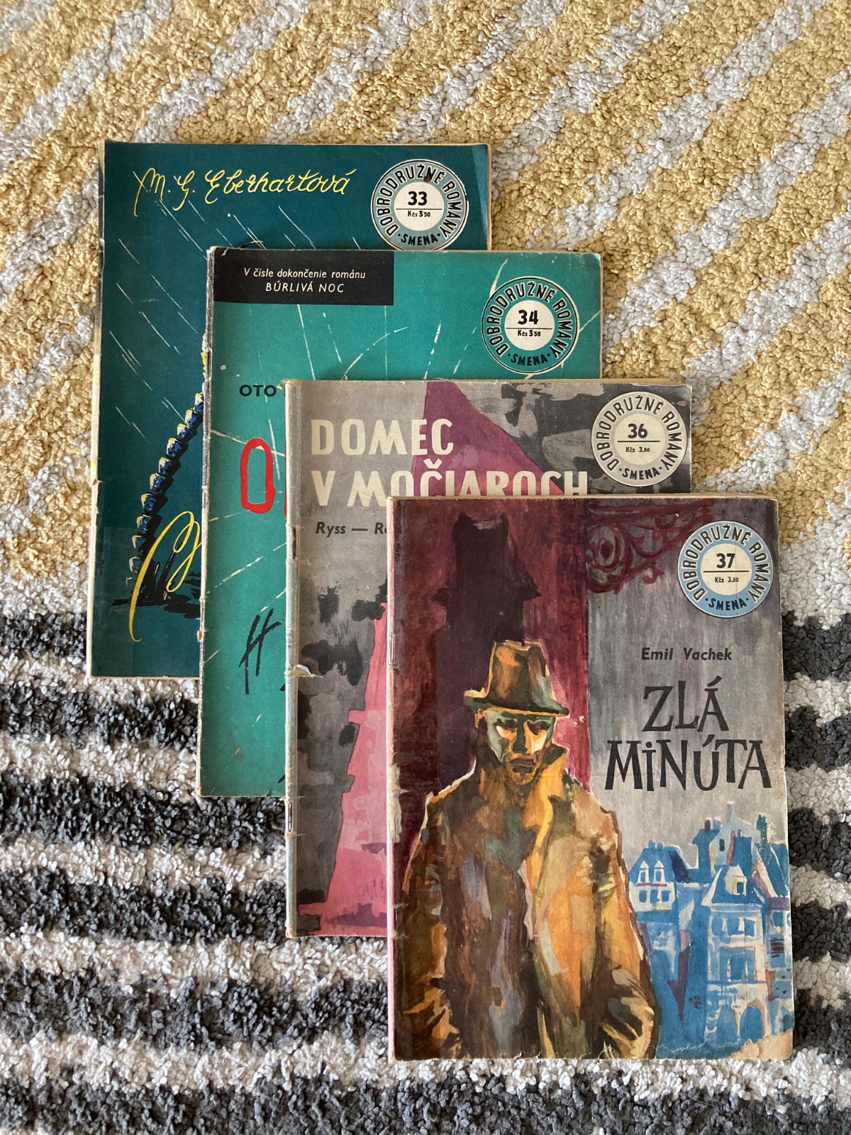 Pekný stav, krásne staré retro dobrodružné romány, vydania z roku 1959, zachovalé, žltšie opotrebovanejšie strany, bez pečiatok, bez vpisov, obaly sú viac opotrebované, Zlá minúta má odtrhnutý kúsok rohu prednej strany a zalepený chrbát obalu, Búrlivá noc má prelepený kúsok chrbta prebalu páskou, Obete irídia majú vpis perom