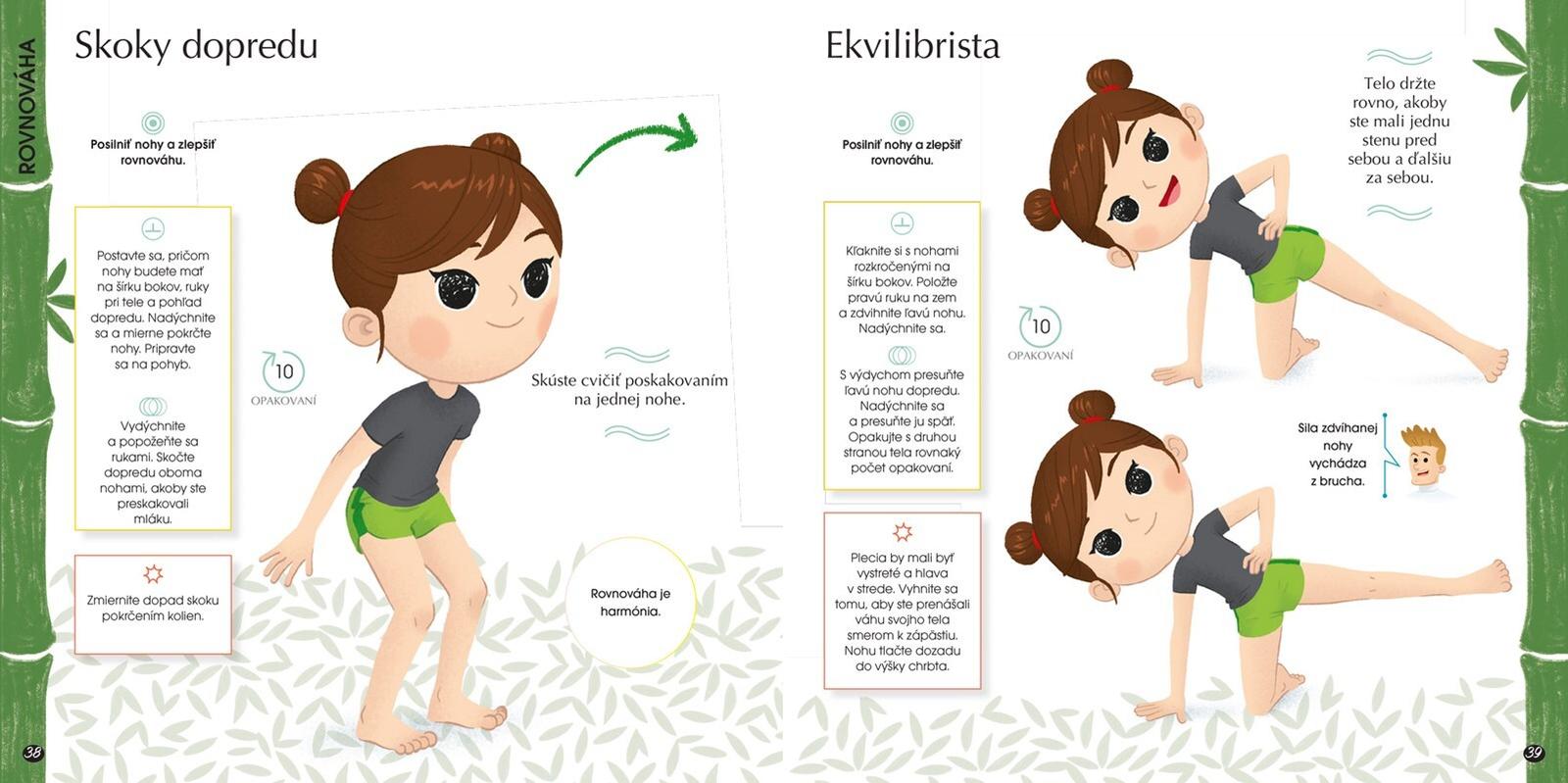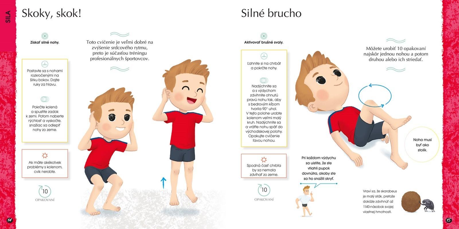 Kniha predstavuje cvičenia zoradené do šiestich fyzických charakteristík: rýchlosť, sila, vytrvalosť, ohybnosť, koordinácia a rovnováha. Na precvičenie každej z nich je navrhnutých päť cvičení a relaxačná spoločenská hra. Nájdete tu aj tipy, nápady a oddychové cvičenia.