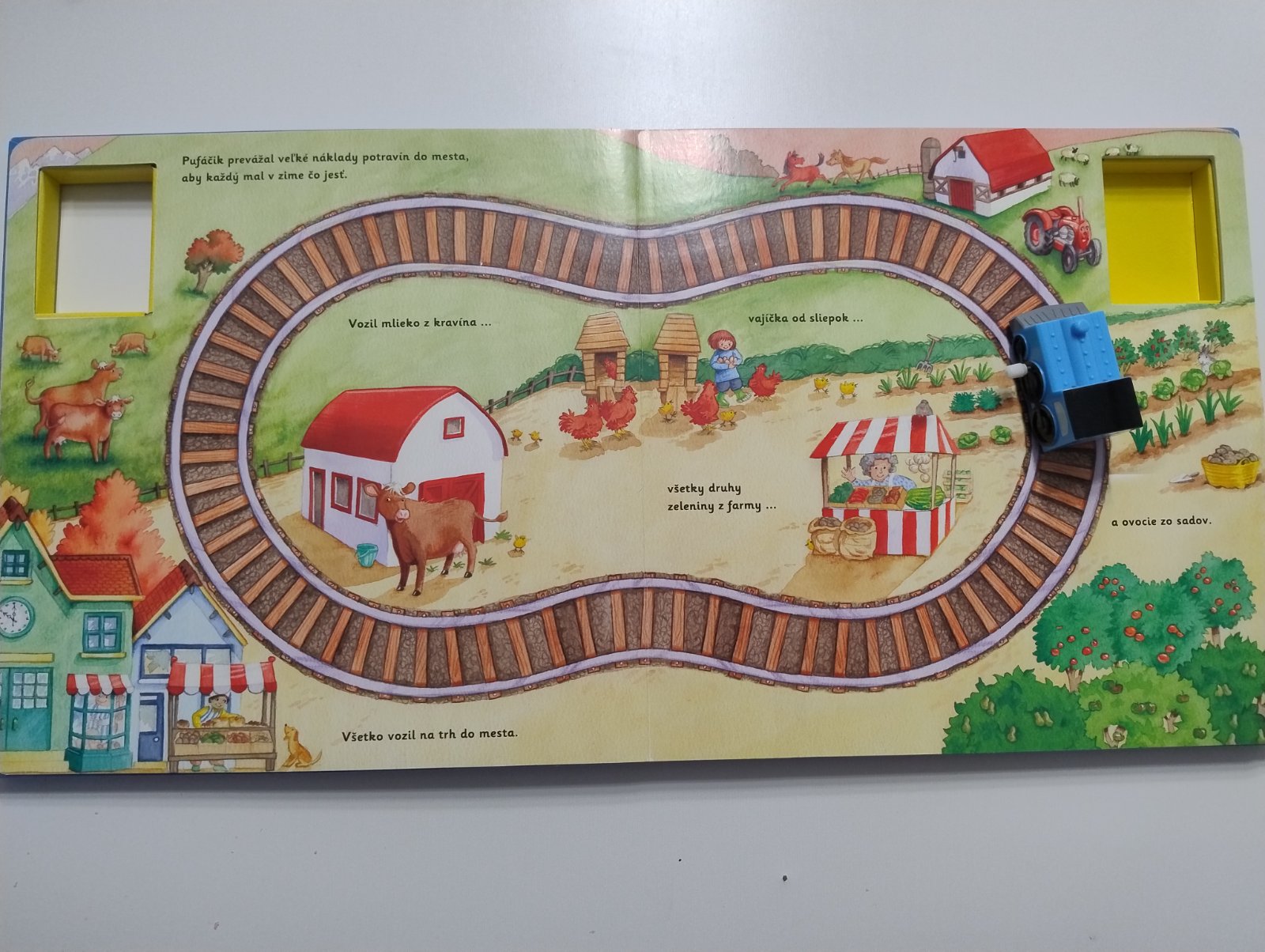 Milá kniha s vláčikom, ktorý sa po natiahnutí pohybuje po strane