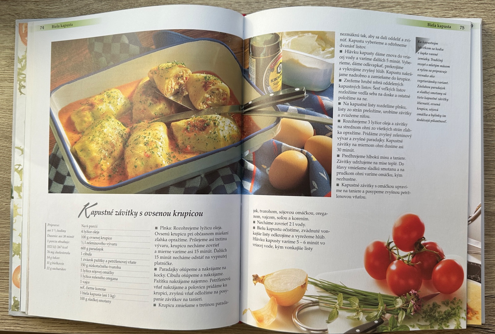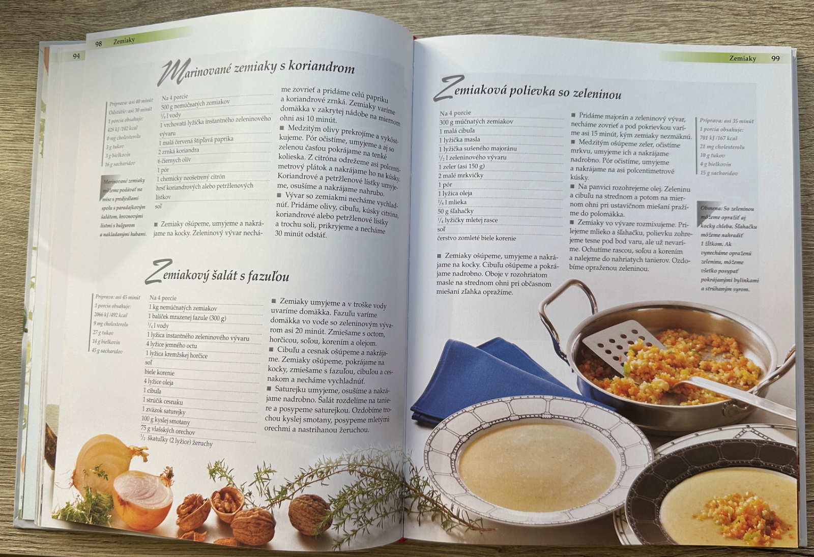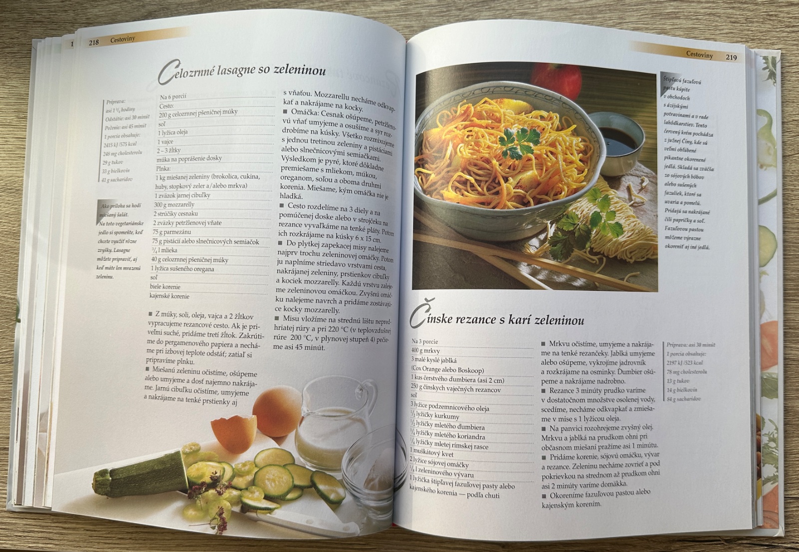 Kuchárka viacmenej pre vegetariánov – viac ako 360 receptov o využití ovocia, zeleniny a obilnín v sladkej i slanej forme. Pri každom recepte sú uvedené údaje o množstve joulov, kalórií, cholesterolu, tukov, bielkovín a sacharidov.Vydavateľstvo: Readers Digest Výber Jazyk:Slovenský,Väzba:Tvrdá,Počet strán:320