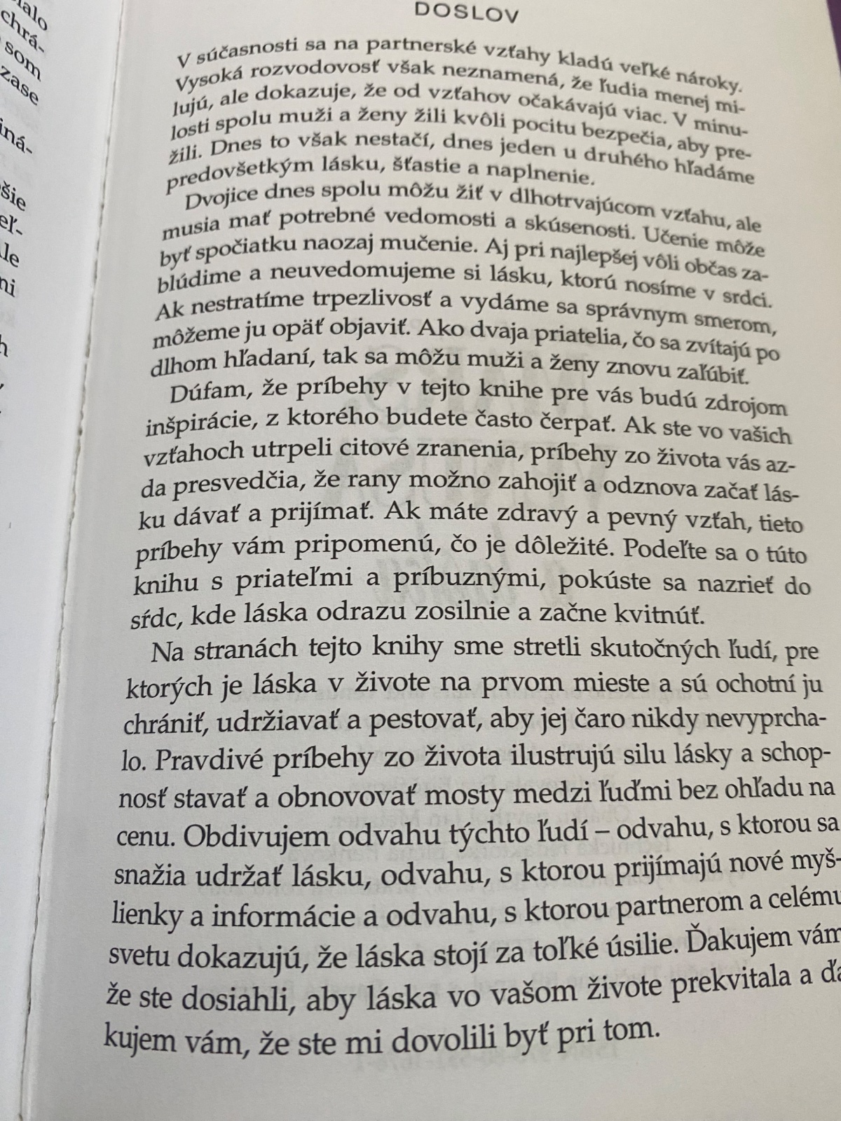 Pravdivé príbehy zo života ilustrujú silu lásky a schopnosť stavať a obnovovať mosty medzi ľuďmi. Ak máte zdravý a pevný vzťah, tieto príbehy vám pripomenú, čo je dôležité. Podeľte sa o túto knihu s priateľmi a príbuznými. Pokúste sa nazrieť do sŕdc, kde láska odrazu zosilnie a začne prekvitať. Obsahuje inšpirujúce príbehy o partnerských vzťahoch, ktoré fungujú.