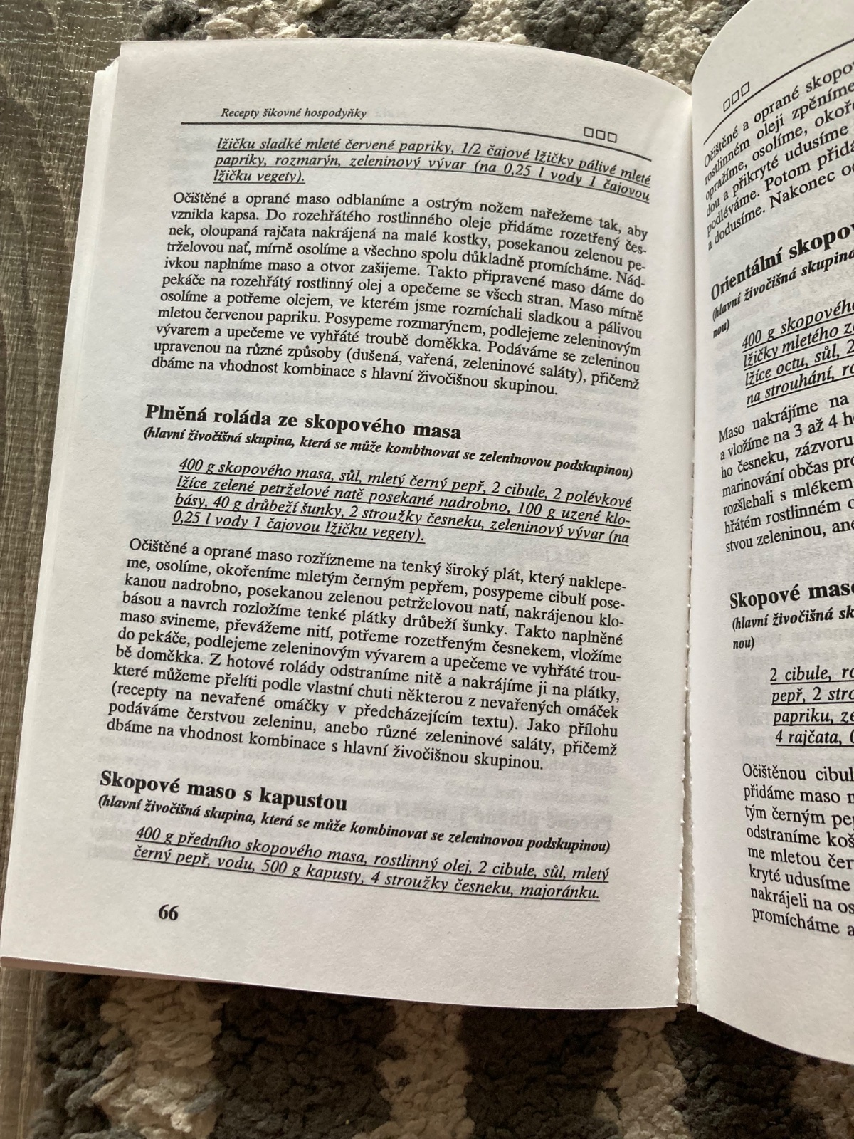 Rozdelenie do skupín: Recepty sú logicky členené na jedlá rastlinnej skupiny a živočíšnej skupiny.