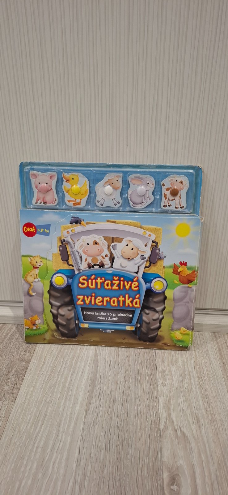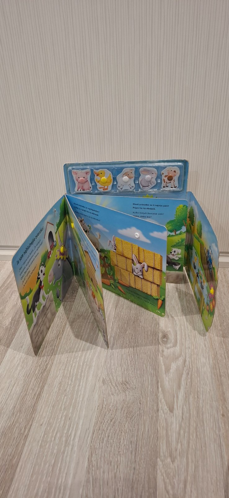 Knižka o zvieratkách s piatimi pripínacími zvieratkami. Málinko roztrapkané rožky, inak krásna knižka.