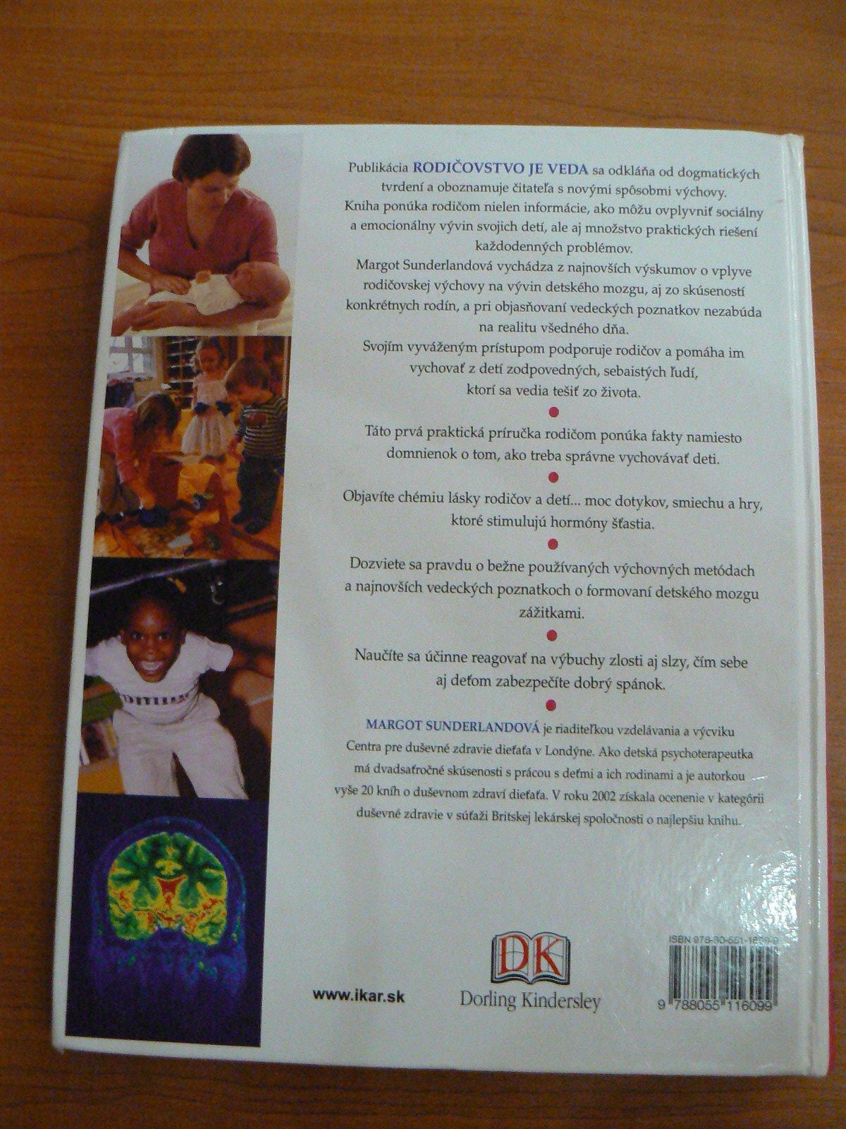 kniha Rodičovstvo je veda, vpredu aj vzadu lepené, na zadnej strane počmáraná - preto symbolická cena 2e.