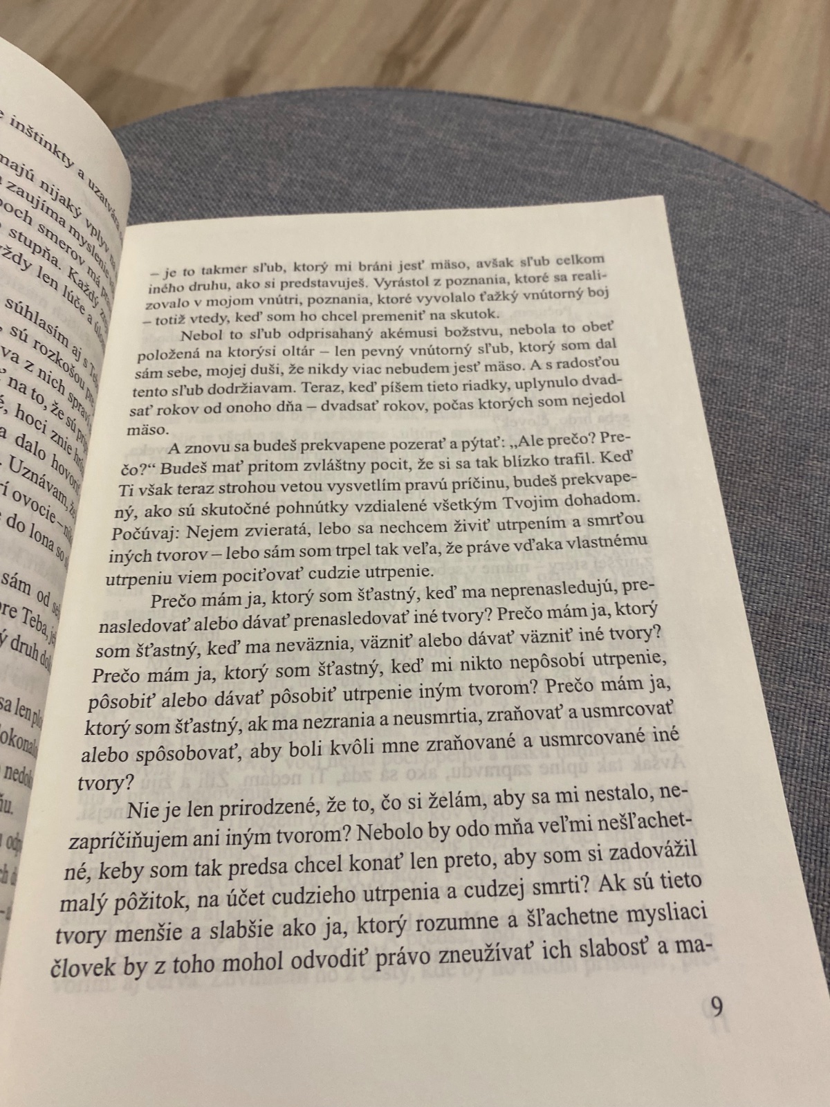 Obsah: Kniha objasňuje autorov pohľad na etický život a právo zvierat na život, ktoré máme rešpektovať a chrániť. Autor bol presvedčený vegán a veril, že krutosť voči zvieratám je prepojená s krutosťou voči ľuďom, a že vojny sa vedú, pretože zabíjanie je niečo, čo sa človek musí naučiť v malom meradle.