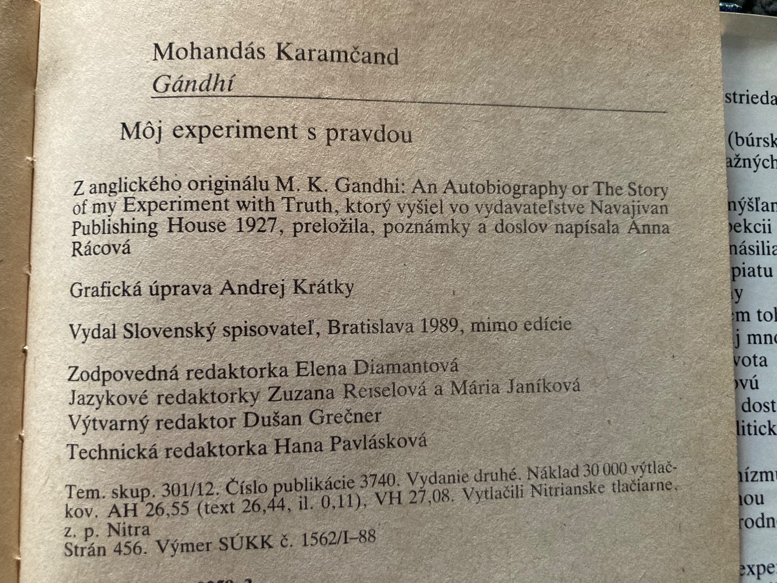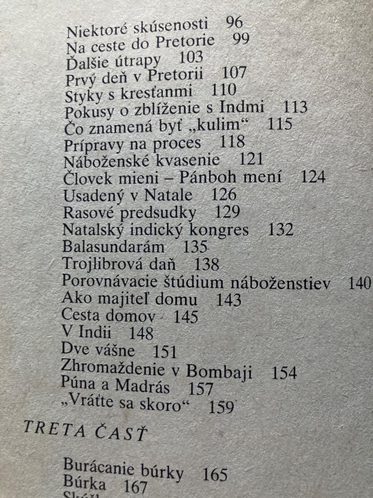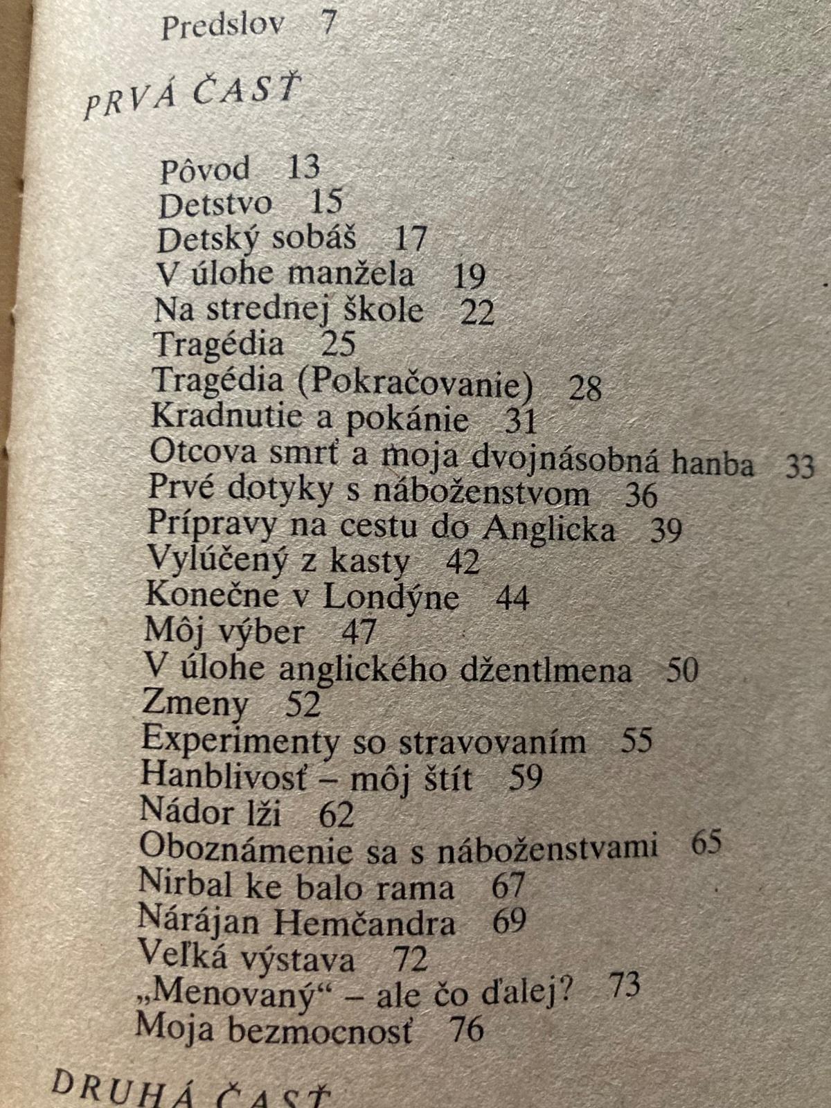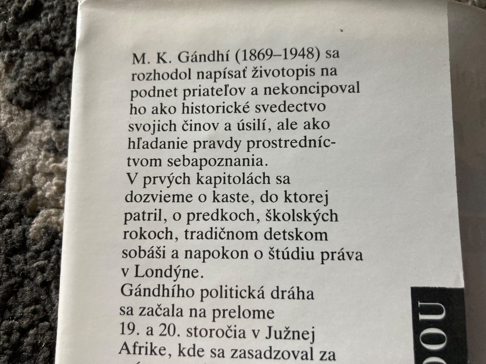 📌Život zakladateľa moderného indického štátu. Autobiografické dielo, ktoré Gándhí napísal na podnet priateľov. V prvých kapitolách sa dozvieme o kaste, do ktorej patril, o predkoch, školských rokoch, tradičnom detskom sobáši, o štúdiu práva v Londýne. Druhá časť knižky je venovaná pobytu v Južnej Afrike, zachytáva Gándhího skúsenosti ako advokáta…
