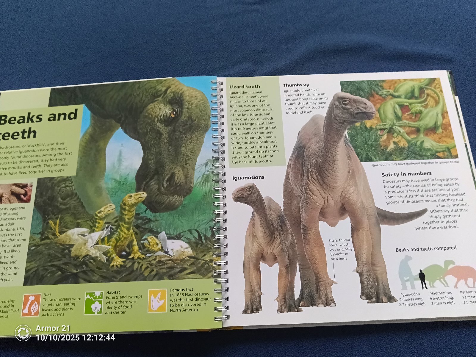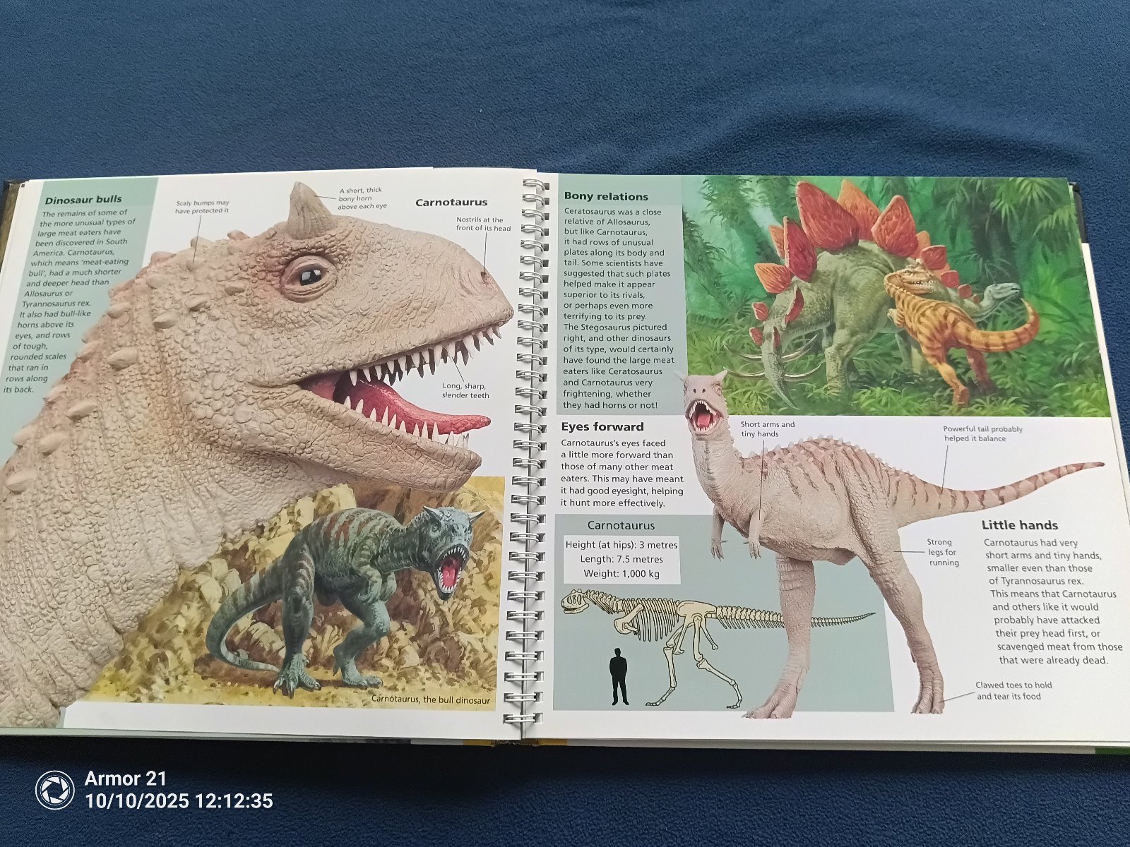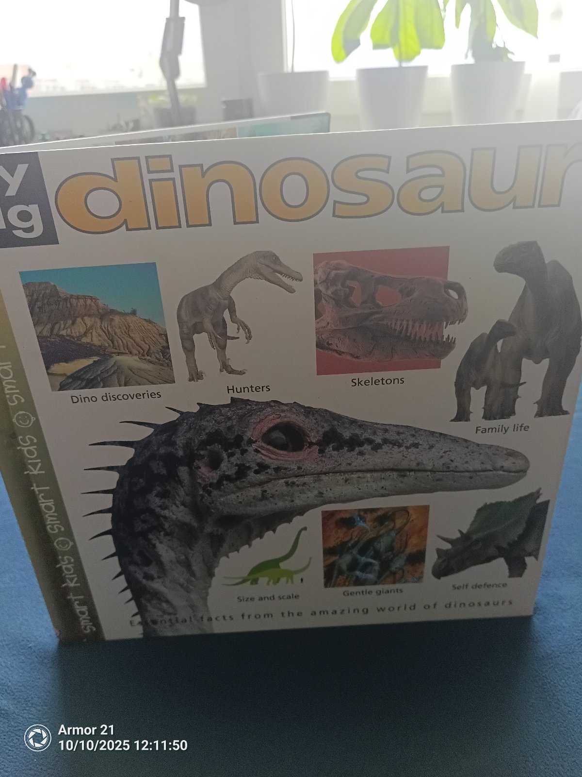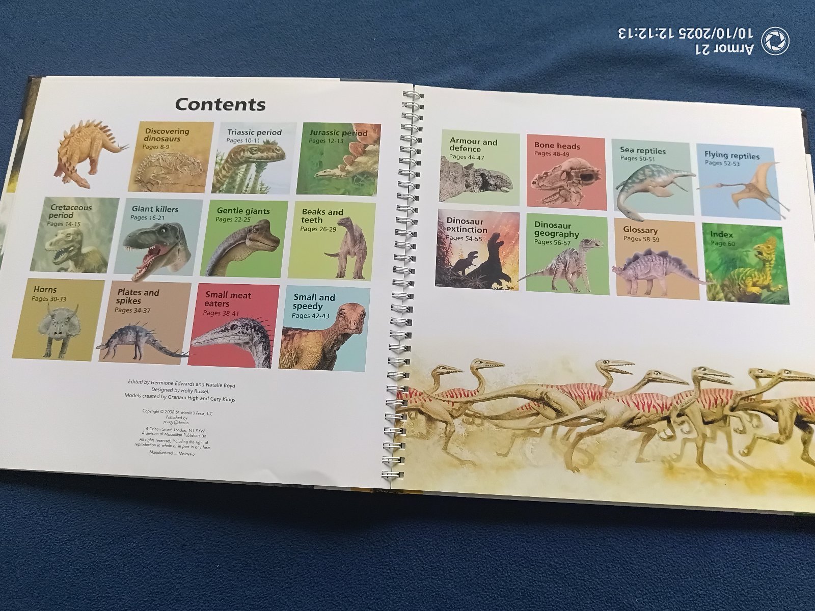 60 strán informácií o spôsobe života, stavbe tela, geografickom výskyte dinosaurov. V angličtine, Pekný čítaný stav, bez poškodenia.