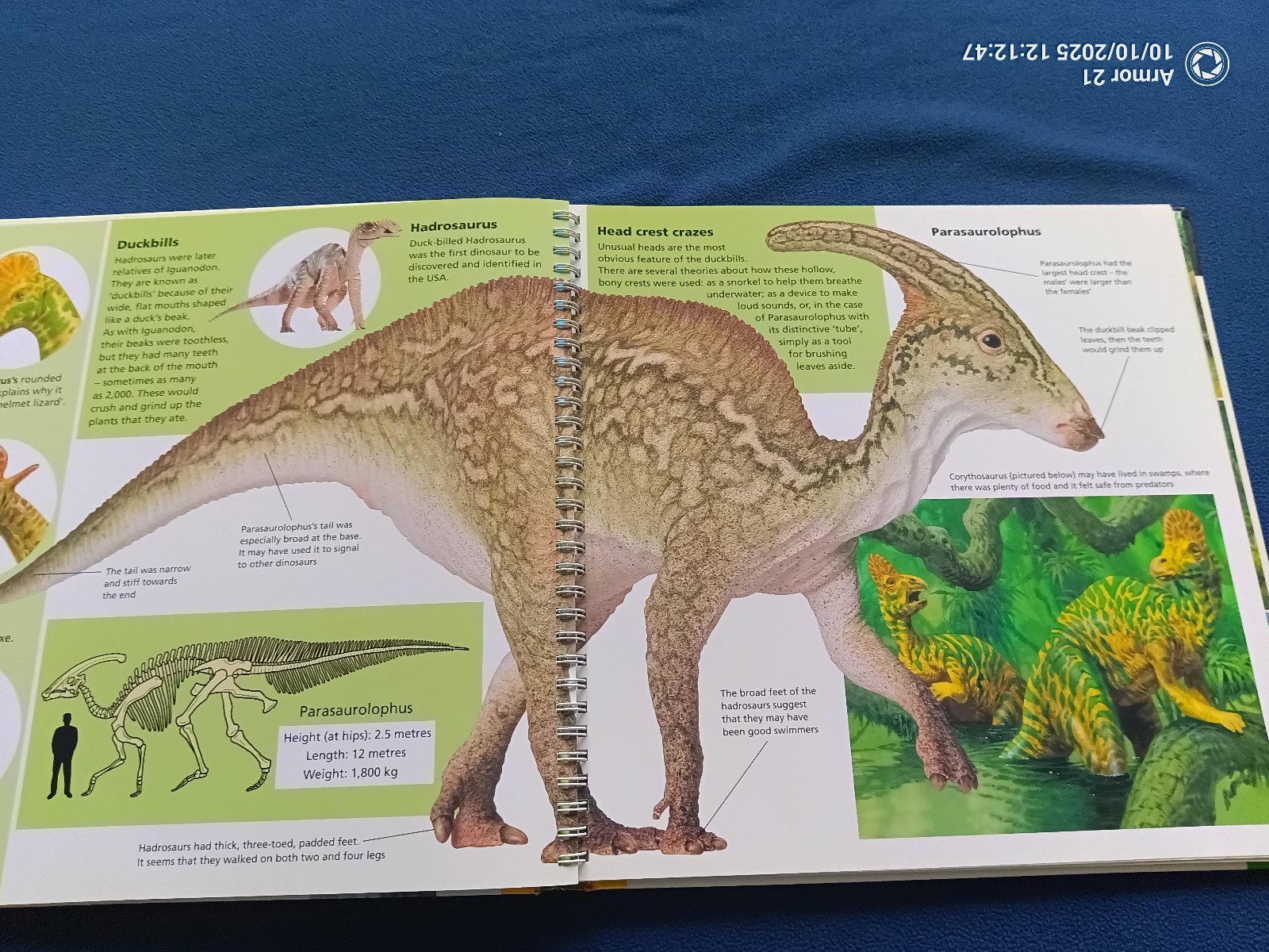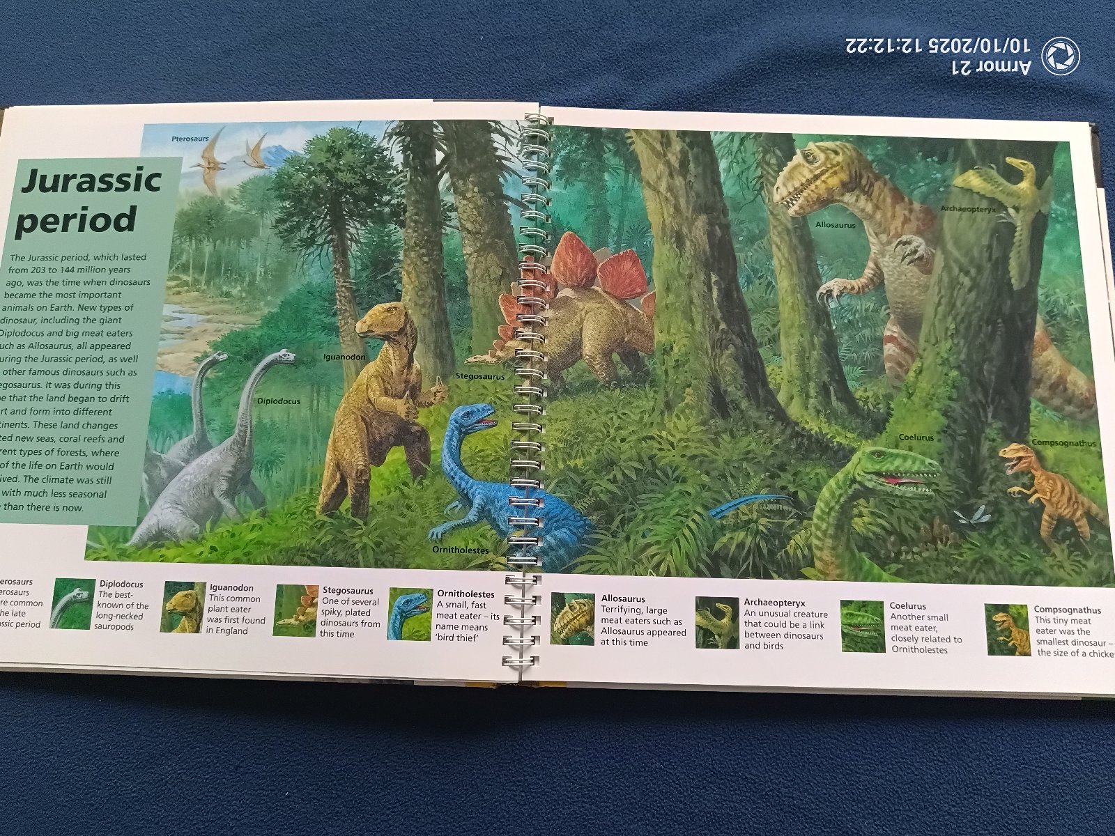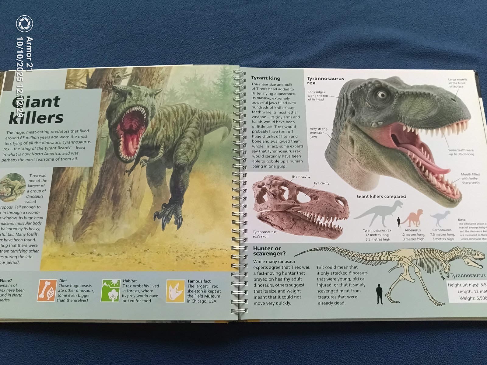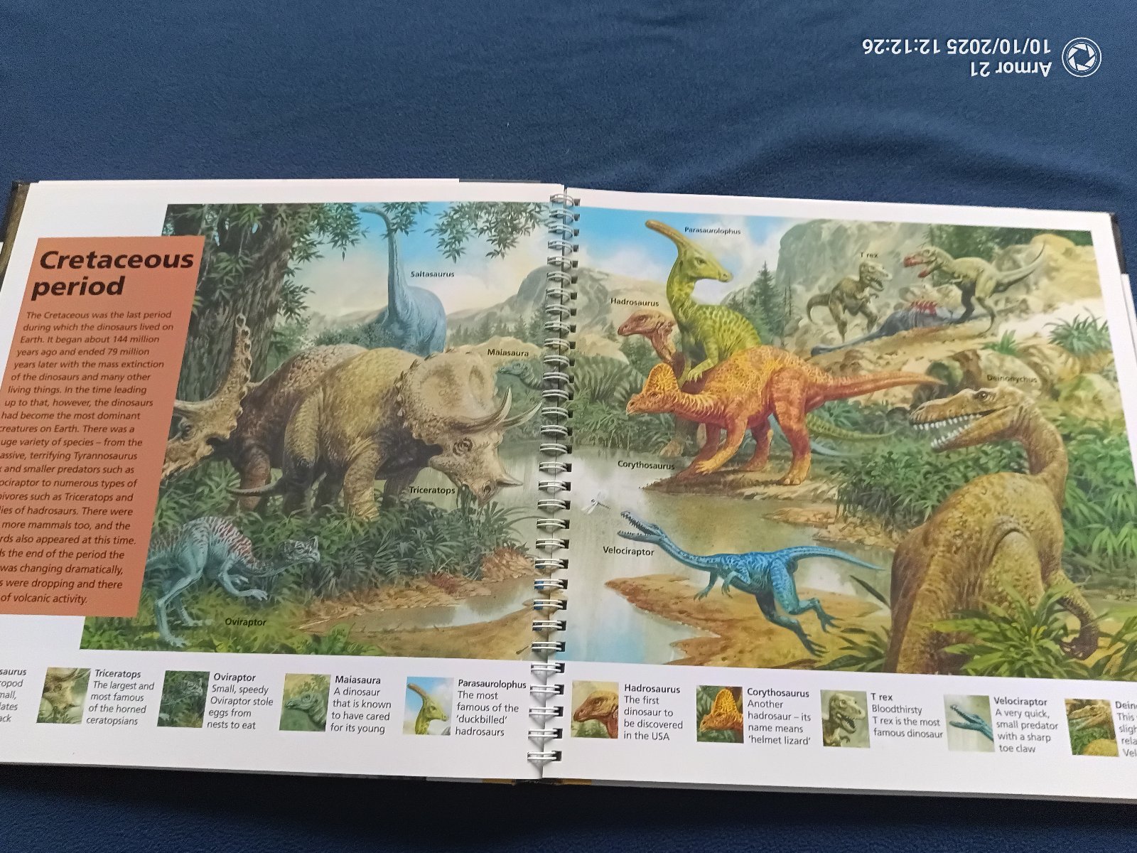 60 strán informácií o spôsobe života, stavbe tela, geografickom výskyte dinosaurov. V angličtine, Pekný čítaný stav, bez poškodenia.