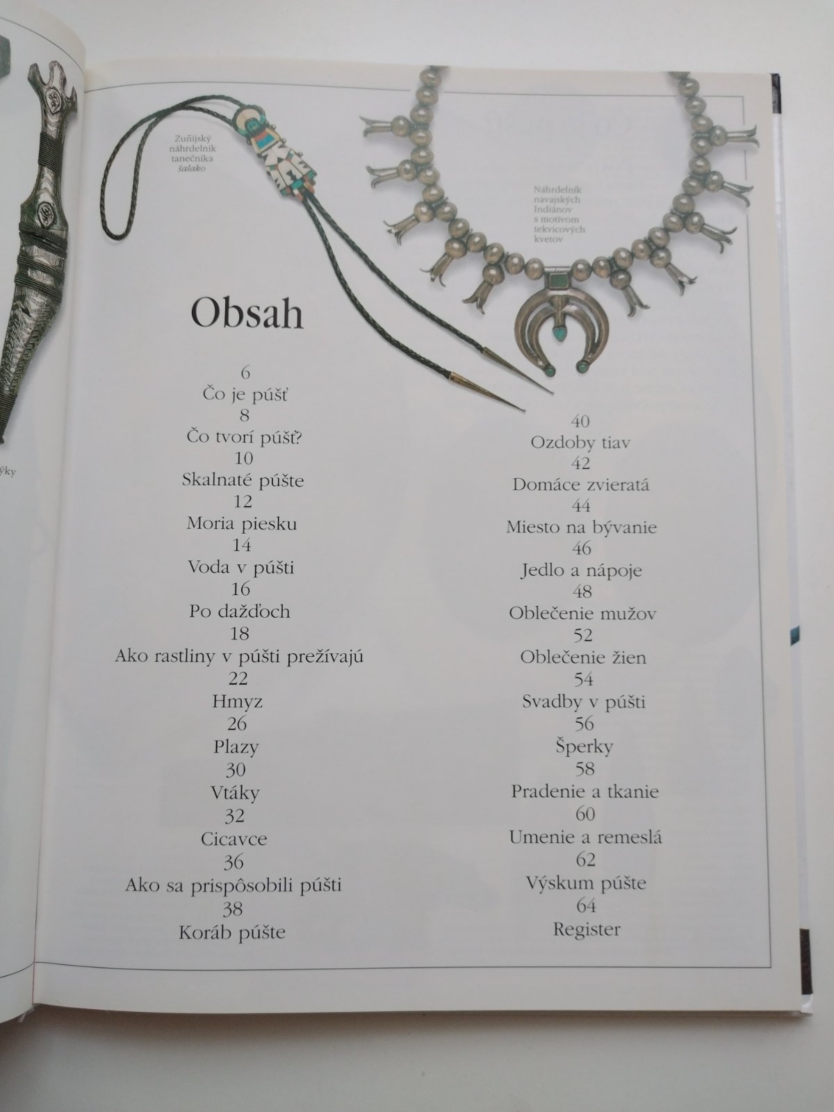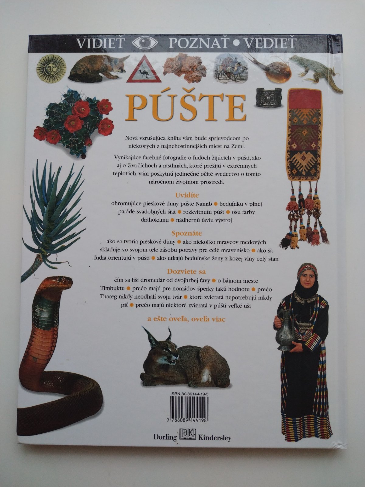 Kniha poskytuje prehľad o horúcich aj chladných púšťach, ich faune, flóre a ľuďoch, ktorí v nich žijú.