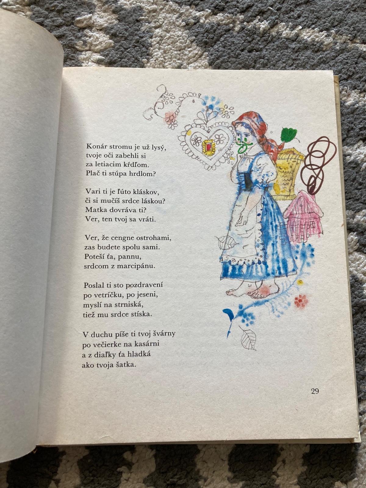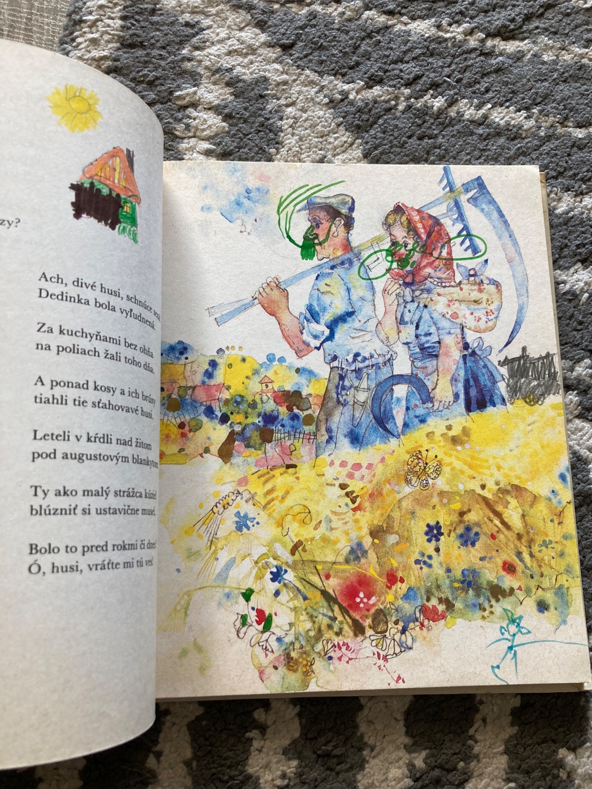 pekný stav, krásna a zachovalá knižka, s krásnymi ilustráciami, listy pekné, bez pečiatok, viaceré obrázky sú ale vyfarbené fixkou a má niekoľko vpisov, obal mierne opotrebovaný, na hrane listov fliačky, prvé vydanie z roku 1984