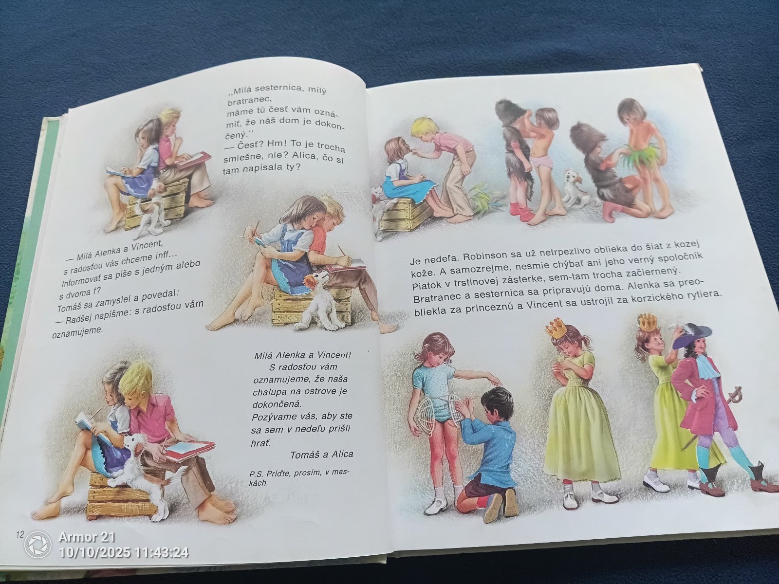 Ahoj. V ponuke máme najmä knihy (vhodné na prvé samostatné čítanie, v angličtie, encyklopédie o prírode...) nové aj čítané, vždy v dobrom stave, rovnako hračky a oblečko po našich chlapcoch. Tovar zasielam po uhradení platby na účet SK5311000000002613904431. K sume si treba prirátať poštovné podľa taríf pošty (www.posta.sk), prípadne packety. Po dohode je možný osobný odber v Bratislave. Ďakujeme za nákup. Poteší keď veci ešte poslúžia. Zuzana