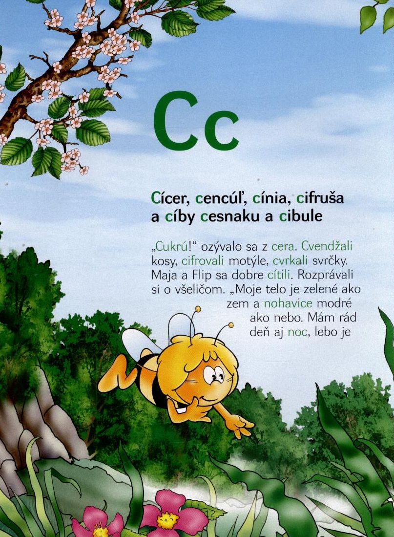V zaujímavých príbehoch s prekrásnymi obrázkami sa dozviete, čo všetko zažila Maja a jej kamaráti na lúke a v lese. Príbehy sú venované jednotlivým písmenám abecedy. Slová, ktoré sa na dané písmenko začínajú alebo ho obsahujú, sú v príbehu vytlačené farebne.