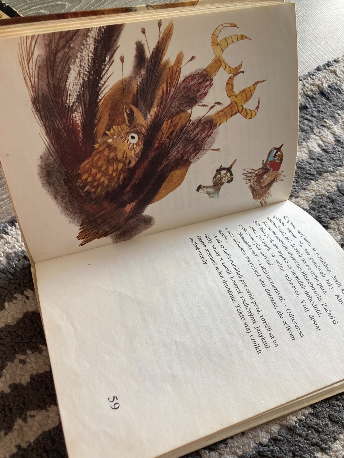 pekný stav, krásna a zachovalá knižka, s krásnymi ilustráciami, bez pečiatok, jeden krátky vpis na prvej strane, inak bez vpisov, listy s fľakmi, obal mierne opotrebovaný, zvlnený, prvé vydanie z roku 1985