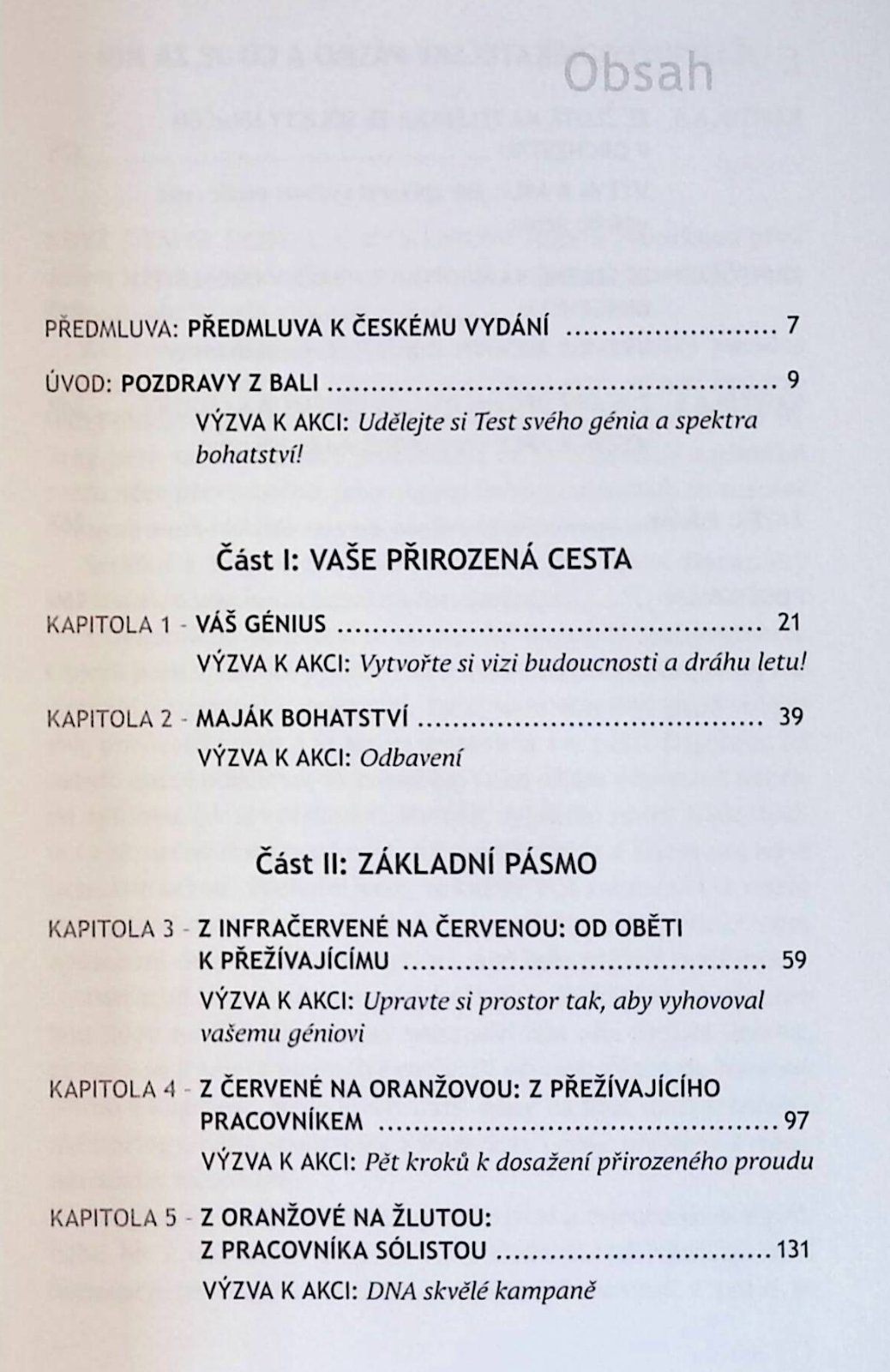 V knize dostanete k dispozici přehlednou mapu, jak bohatství vytvářet, a návod s konkrétními kroky, na které se potřebujete zaměřit, abyste následovali svého vrozeného génia, rozvinuli své přirozené schopnosti a posunuli se na vyšší úroveň bohatství.