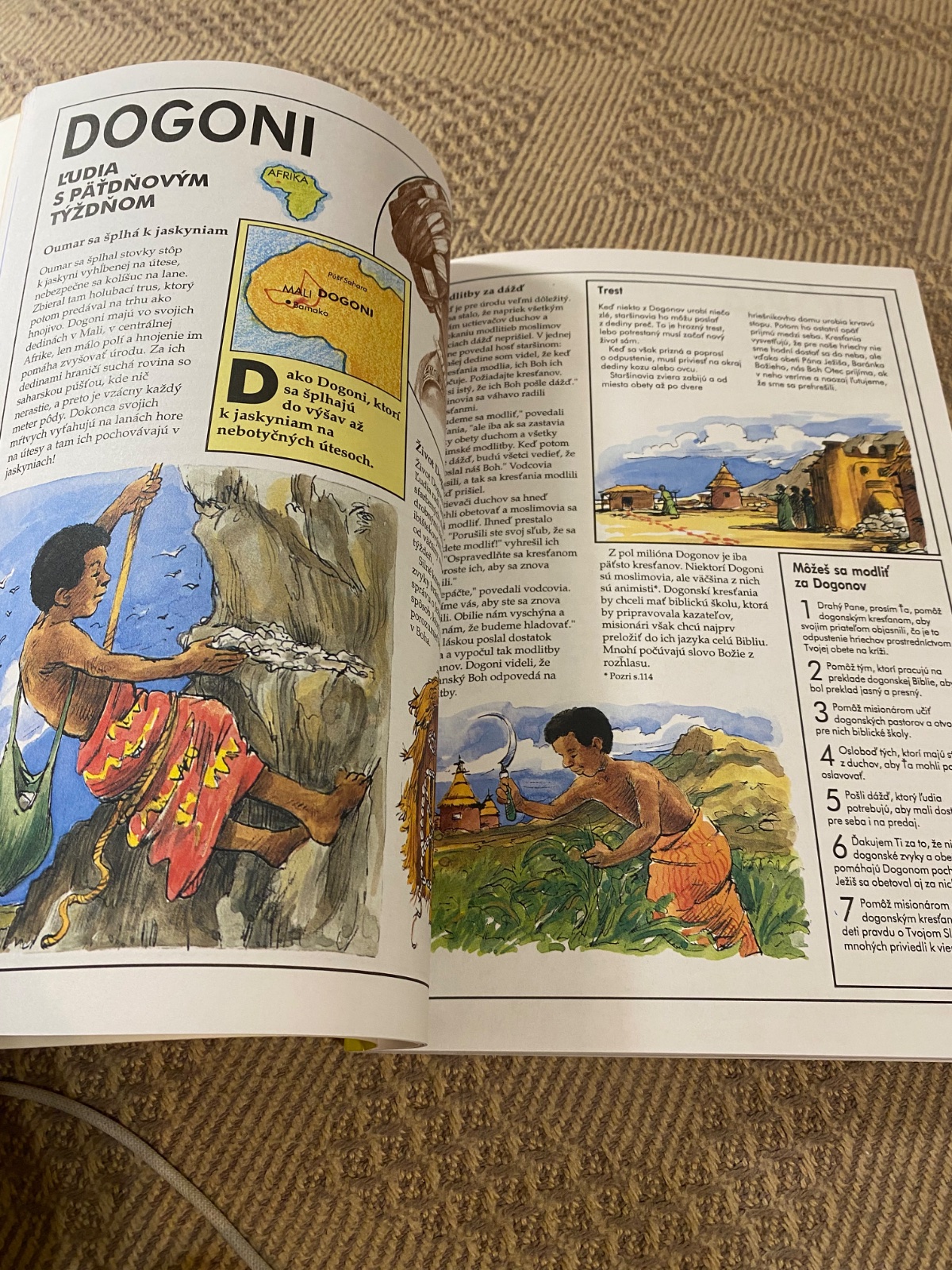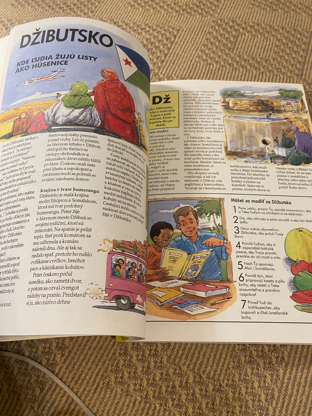Farebná obrázková kniha veľkého formátu poskytuje mnoho zaujímavostí z náboženstva, kultúry, tradícií a zo života v 26 krajinách a národoch. Oboznamuje s potrebou a možnosťou modliť sa za svet a za šírenie evanjelia v ňom, až po informácie o reálnej možnosti zapojenia sa do misijnej práce. Zisti kto sa zdraví vyplazením jazyka, kto zmapoval hviezdy pred 500 rokmi, kto boli prví ochrancovia prírody na svete. Vypátraj kto sú deti stromu omumbotumbonga, kto sú ľudia, ktorí žujú listy ako húsenie, kde sa konali prvé olympijské hry. Začni sa modliť za krajinu hromového draka, za ľudí, ktorí si brúsia zuby do špicata, za ľudí bez domova. Je to kniha od A do Z ako pomôcť deťom modliť sa za svet.