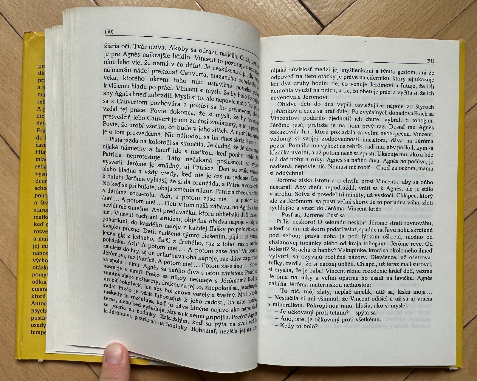 Čo urobí Agnesin manžel, ktorému vyhovuje mať milenku a pritom neodhodiť manželskú obrúčku do smetníka, ako sa zachová Agnes, keď sa ocitne pred voľbou — milenec a či syn — to všetko sa čitateľ dozvie z temperamentnej a bláznivo rytmickej prózy Francoise Dorinovej, ktorej román si získal priaznivcov vo svojej filmovej verzii a iste si ich získa aj v tejto knižnej podobe.