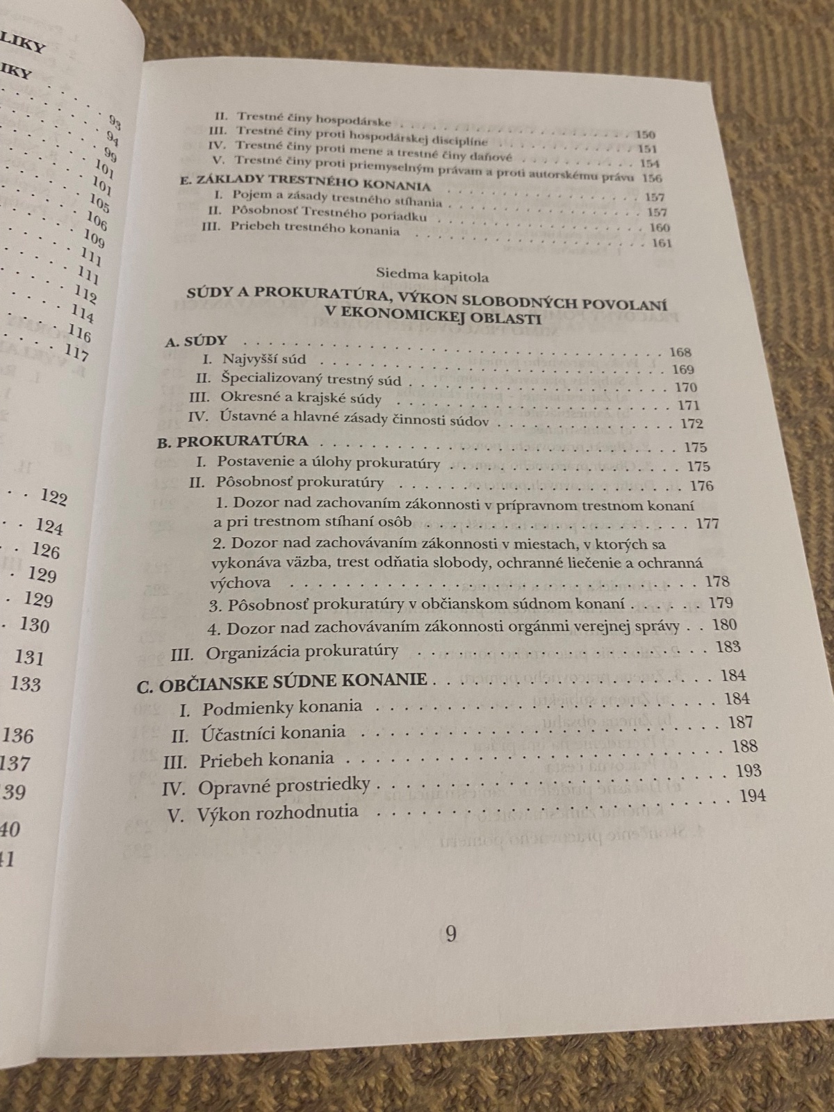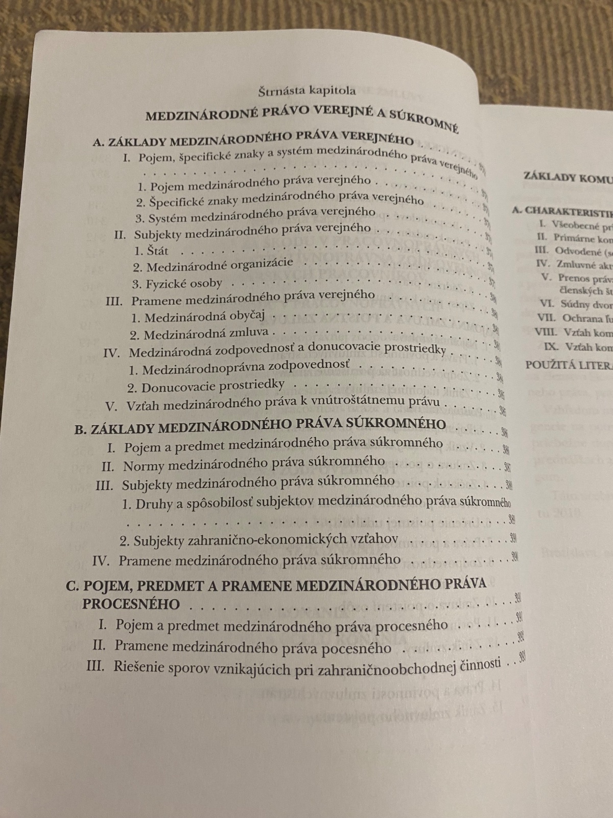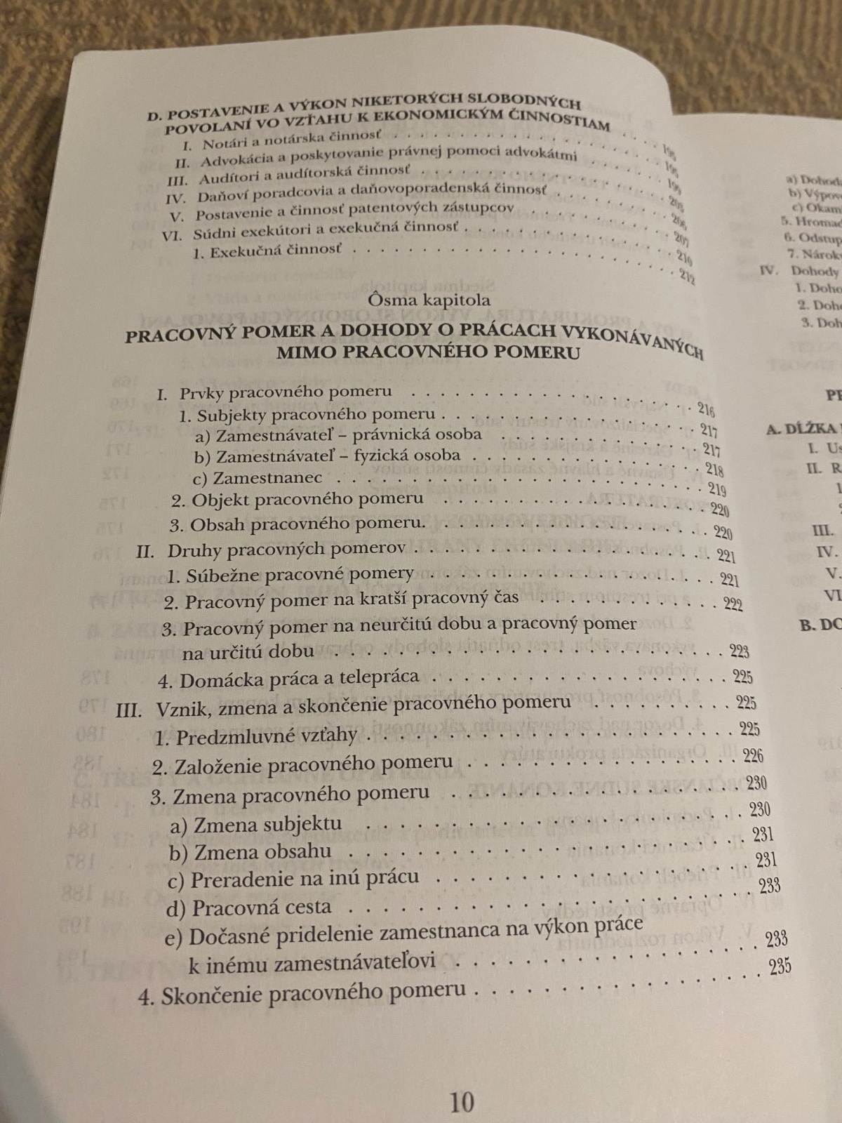 Okrem toho obsahujú aj ťažiskovú problematiku z pracovného práva, správneho práva a občianskeho práva z aspektu ich uplatňovania hospodárskym pracovníkom. Sú sem zaradené aj základy medzinárodného práva verejného a súkromného a nadväzne na členstvo SR v Európskej únii aj základy komunitárneho práva, práva Európskej únie.