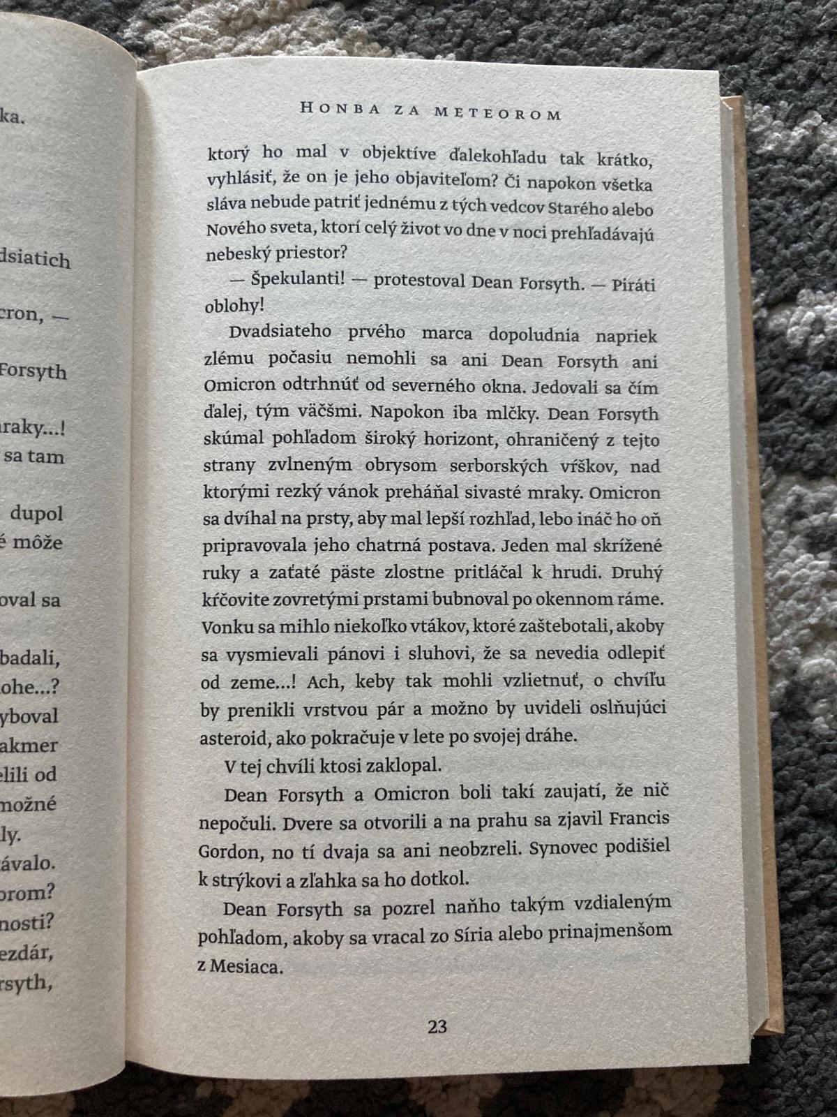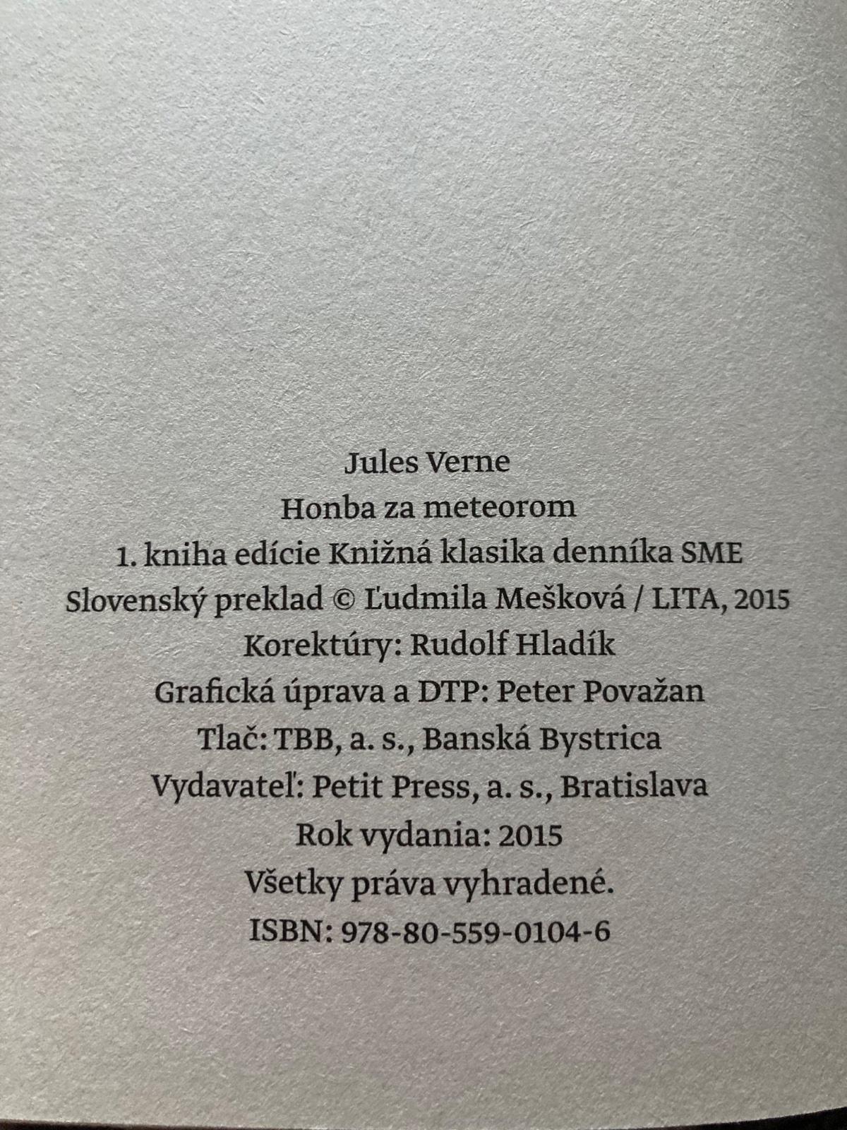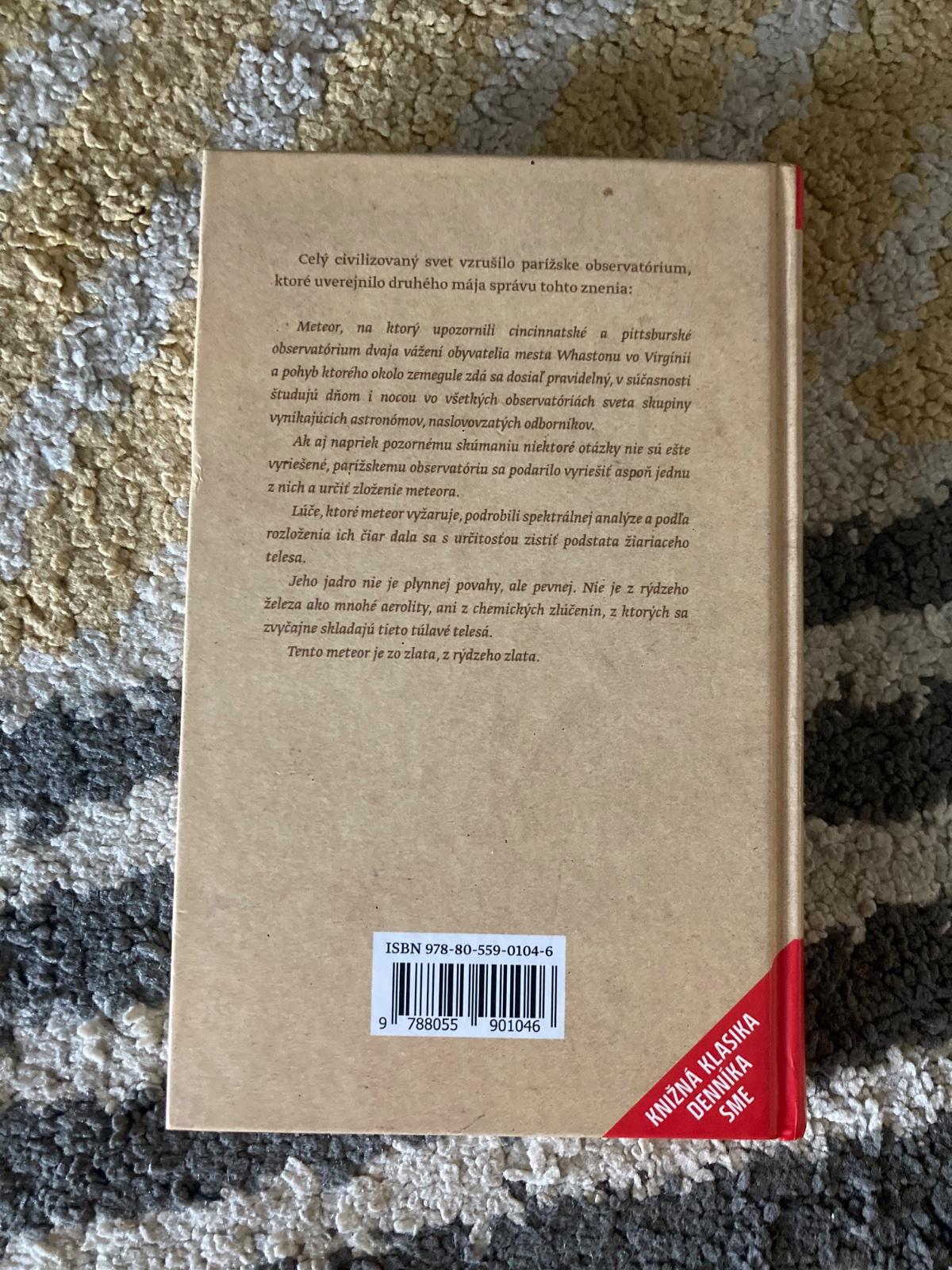 📌 Honba za meteorom je prvou knihou z edície Knižná klasika denníka SME. Je to príbeh o dvoch hvezdároch, ktorí objavia meteor pohybujúci sa okolo Zeme. Na tom by nebolo nič zvláštne, kým sa neobjavia informácie, ktoré rozhýbu celý ďalší dej románu. Meteor je celý zo zlata. Hodnota meteoru s priemerom 50 metrov rozpúta konflikt nielen medzi objaviteľmi samotnými, ale aj medzi krajinami.