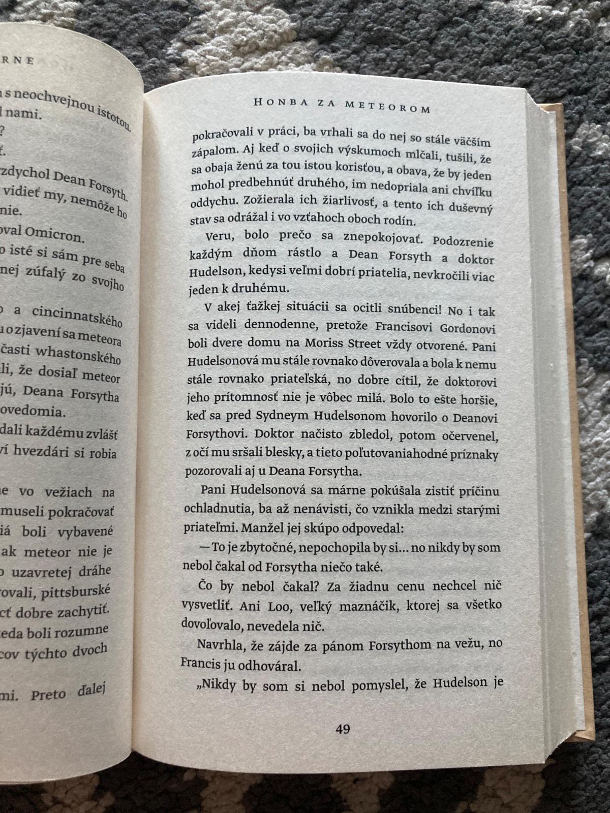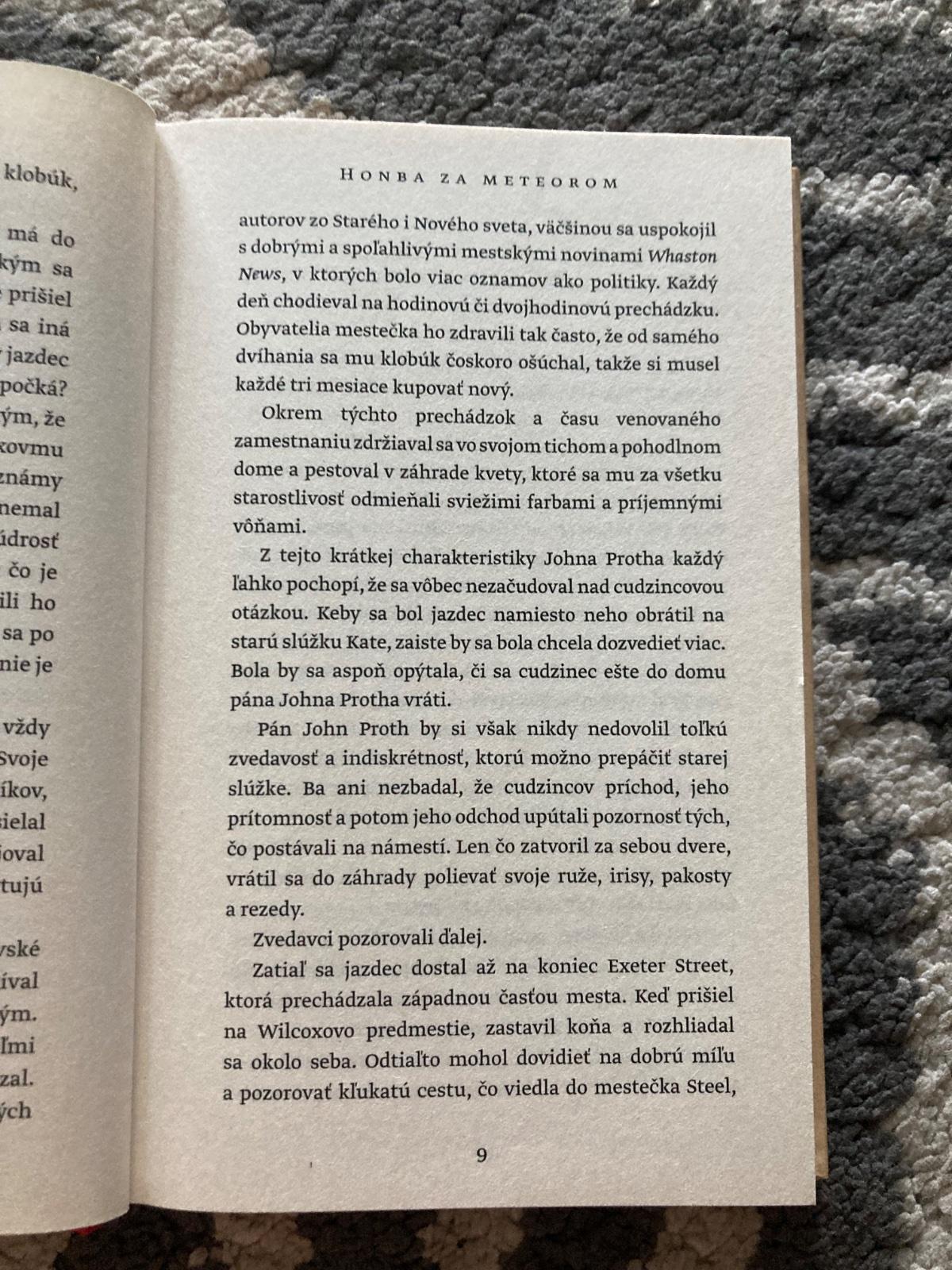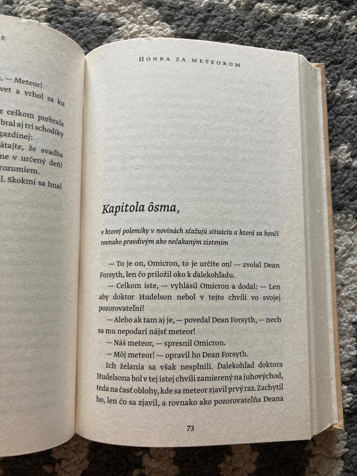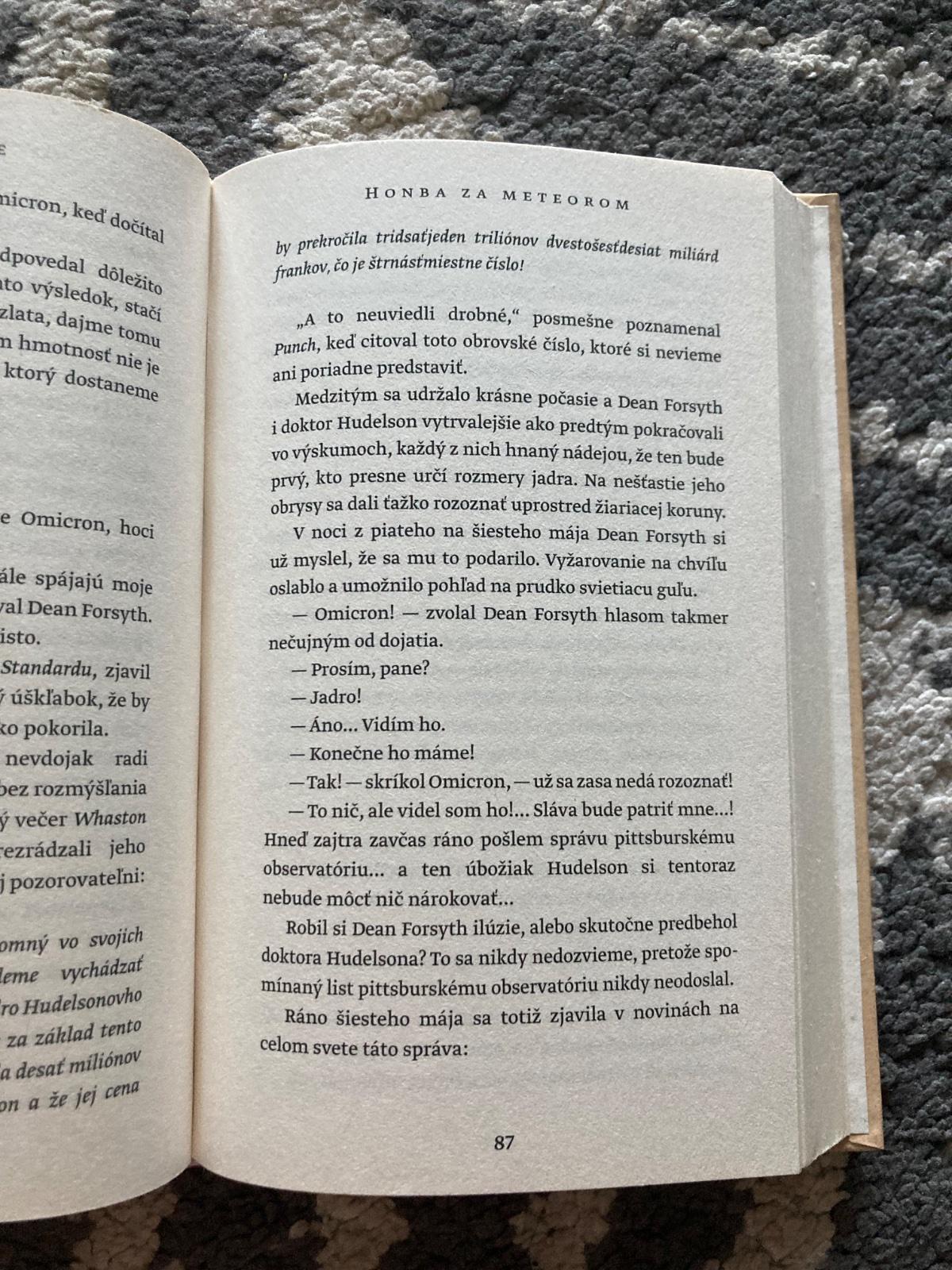 📌 Honba za meteorom je prvou knihou z edície Knižná klasika denníka SME. Je to príbeh o dvoch hvezdároch, ktorí objavia meteor pohybujúci sa okolo Zeme. Na tom by nebolo nič zvláštne, kým sa neobjavia informácie, ktoré rozhýbu celý ďalší dej románu. Meteor je celý zo zlata. Hodnota meteoru s priemerom 50 metrov rozpúta konflikt nielen medzi objaviteľmi samotnými, ale aj medzi krajinami.