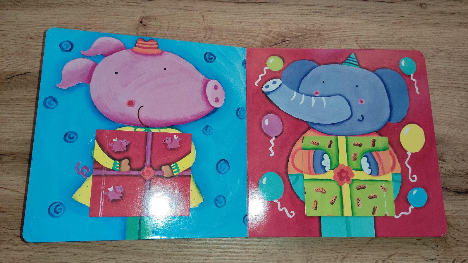 Ponúkam na predaj krásnu knižku pre dieťa. Tvrdé stránky, bez slov. Každé zvieratko drží darček, po odkryti okienka dieťa zistí aký. Hrana, ale len v mojej prítomnosti, obľúbená, v peknom používanom stave, použitie vidno skôr len na obálke, veľmi pekná. Cena 3 eura.