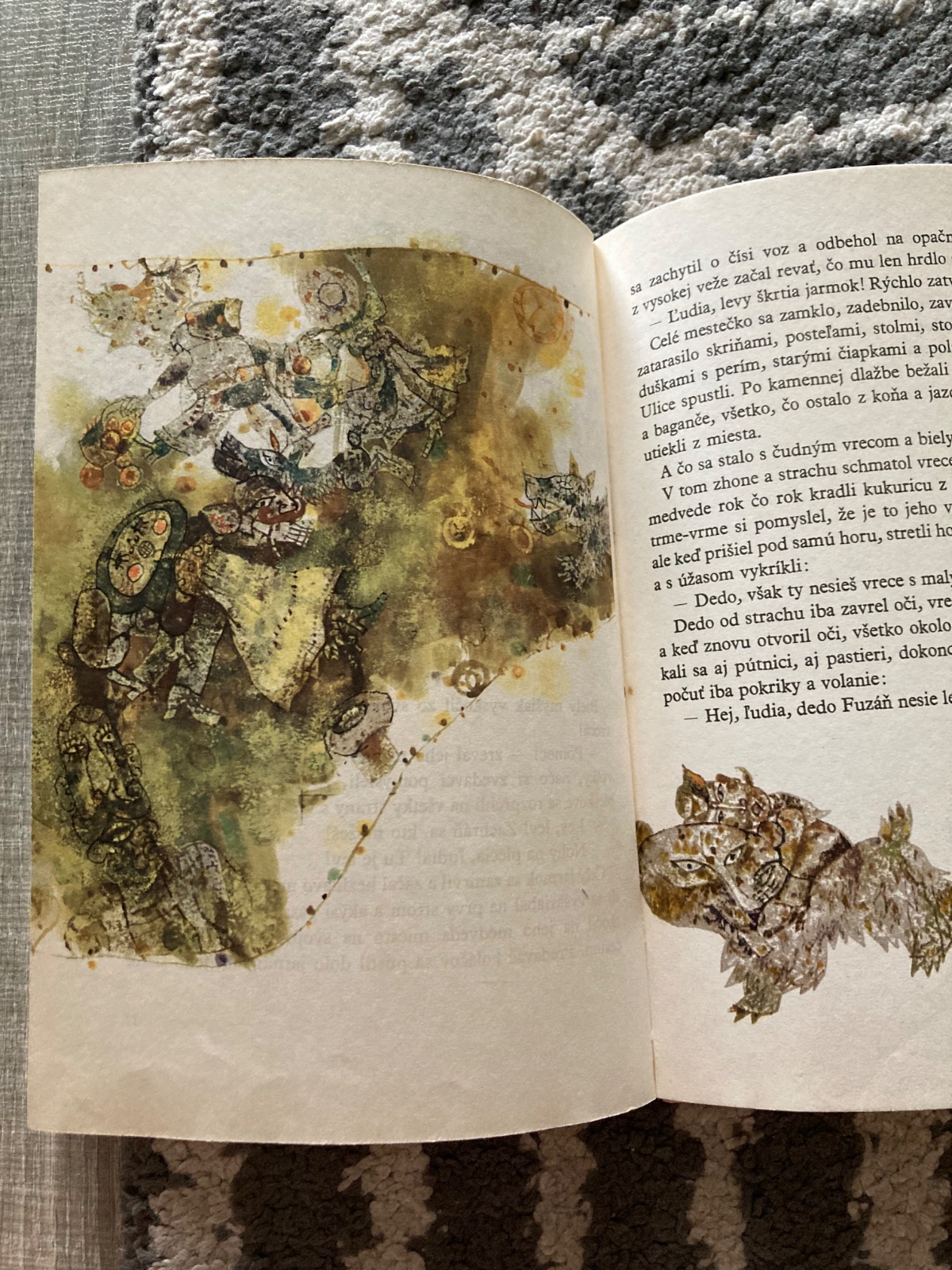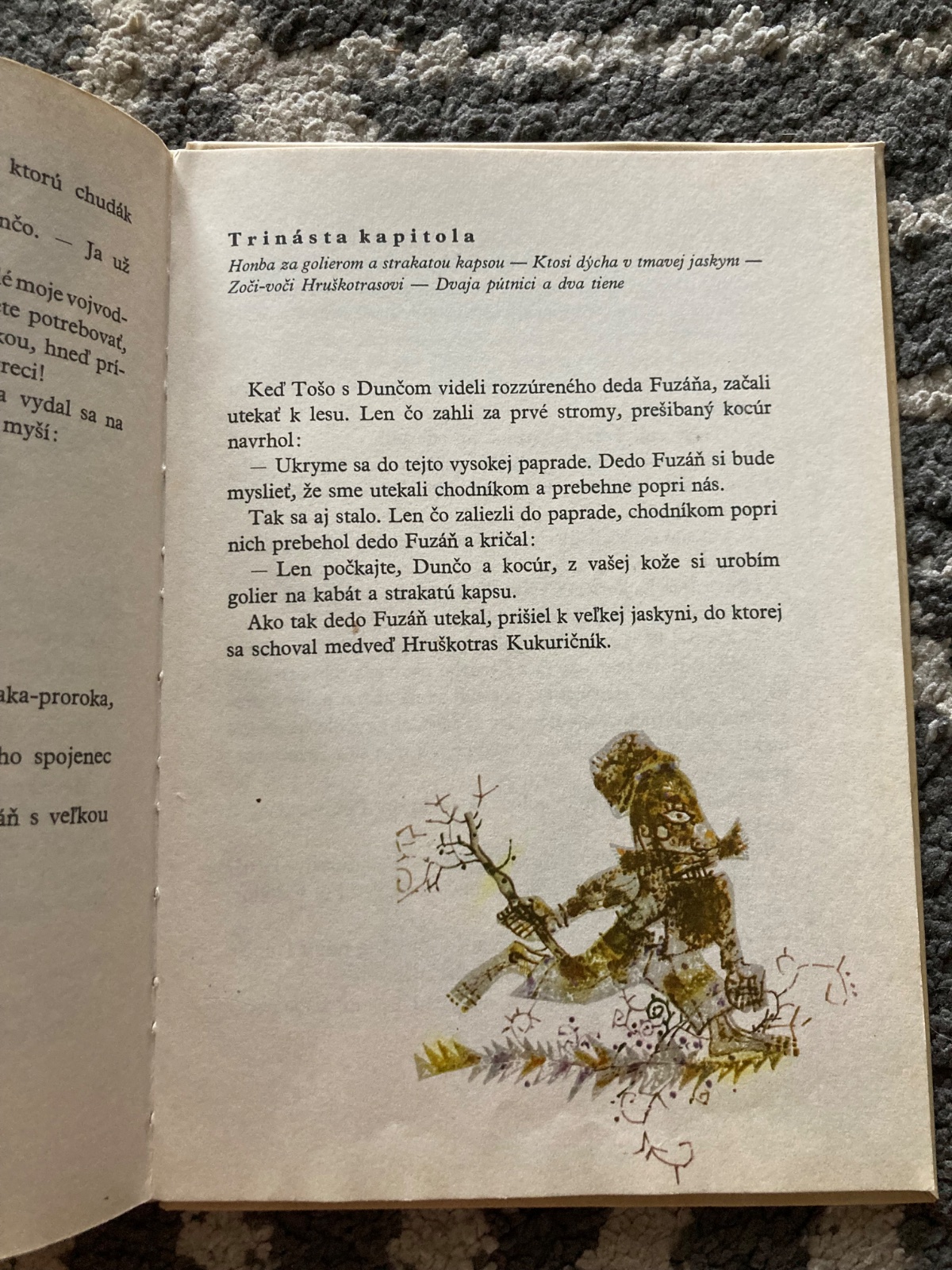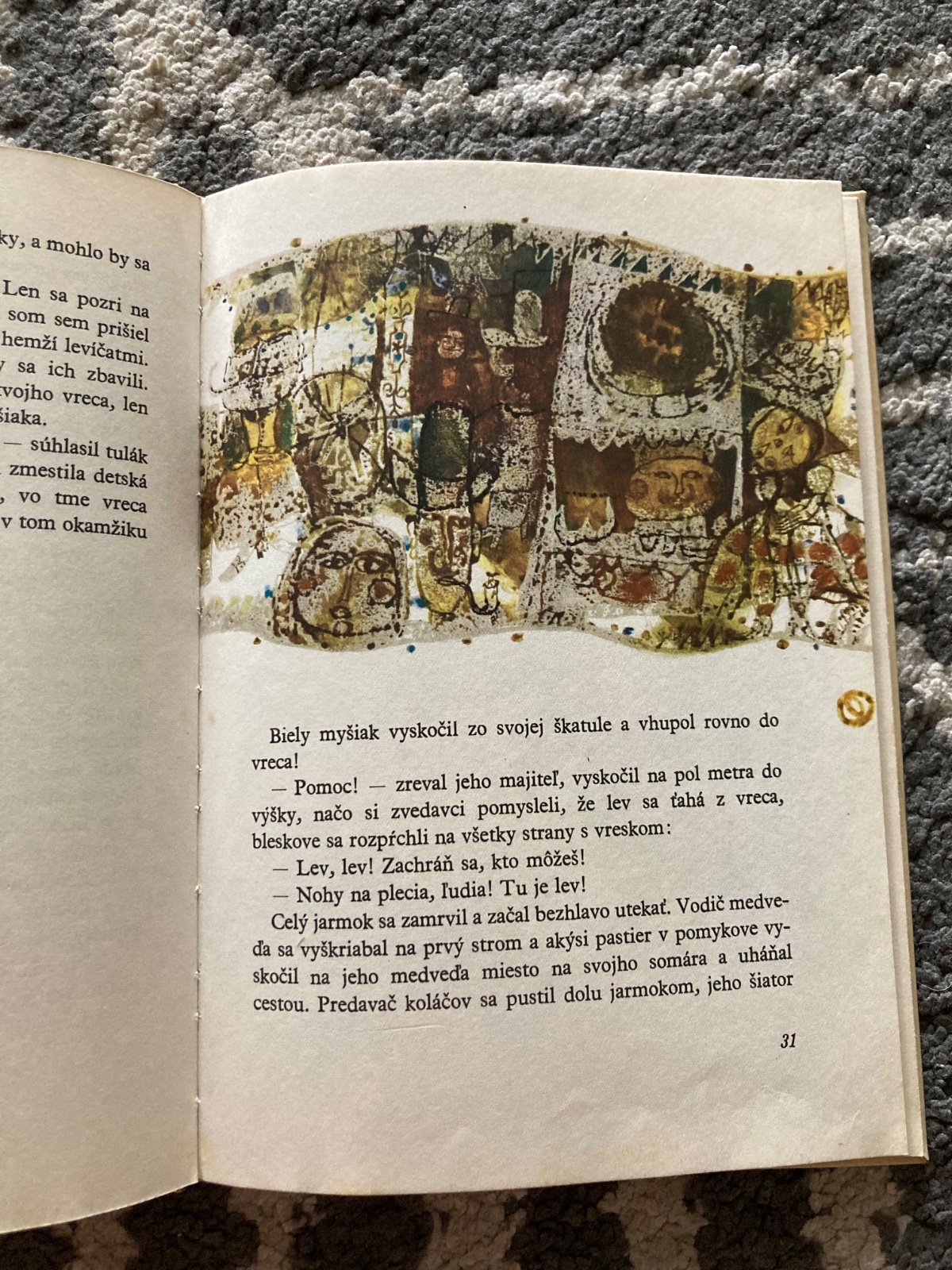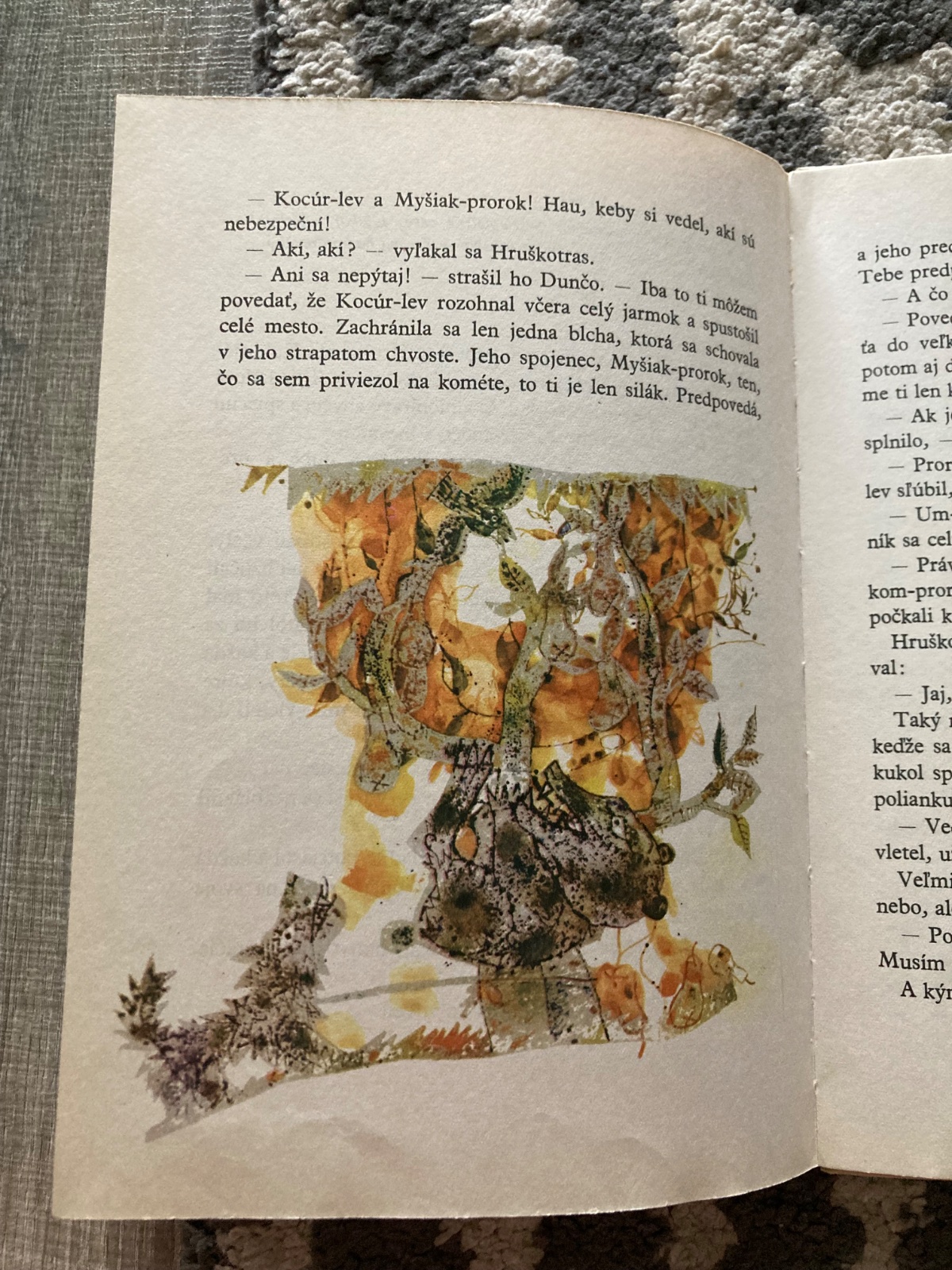 pekný stav, krásna a zachovalá knižka, s krásnymi ilustráciami, prvé vydanie z roku 1967, listy pekné s občasnými fliačikmi, obsahuje pečiatky a vpisy perom pri pečiatkach, obal je mierne opotrebovaný s napísaným číslom a pečiatkou vpredu, v tomto vydaní vyšla v náklade len 9000 ks