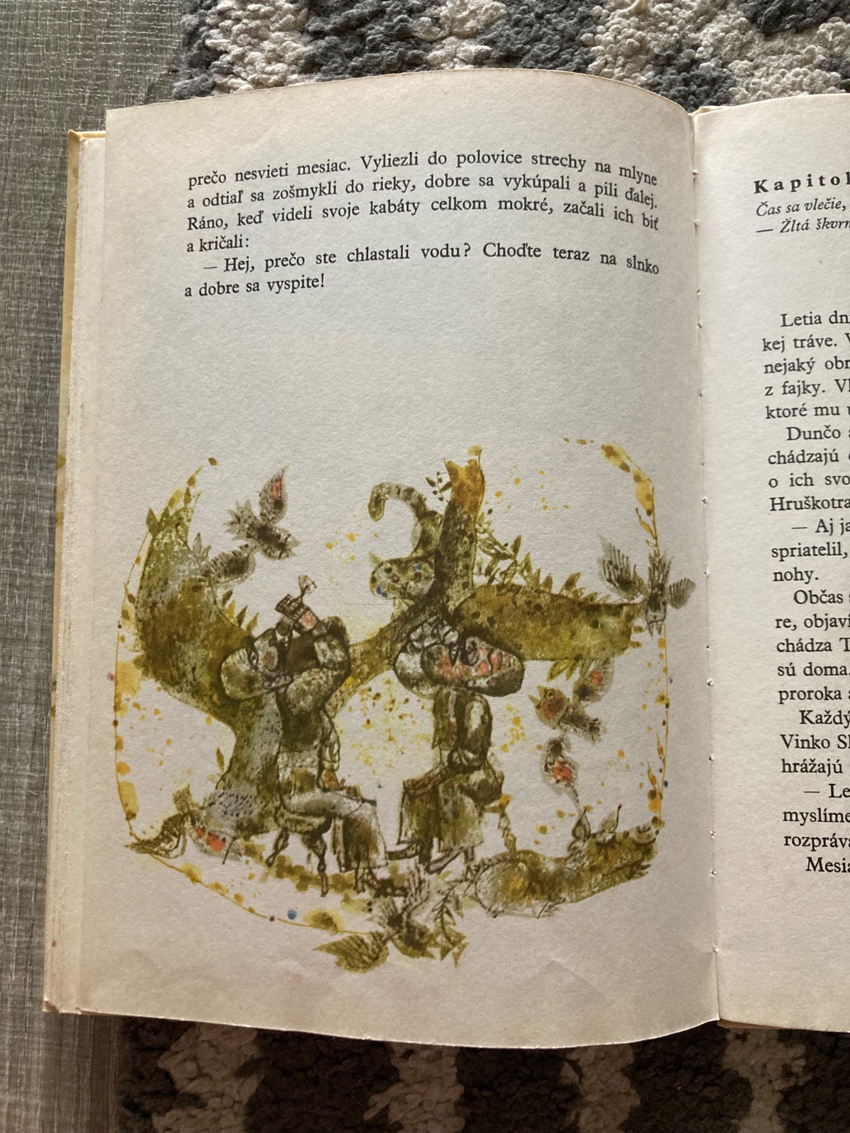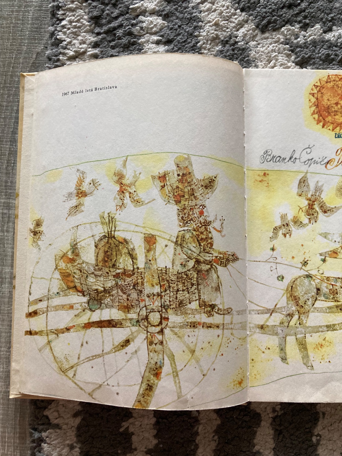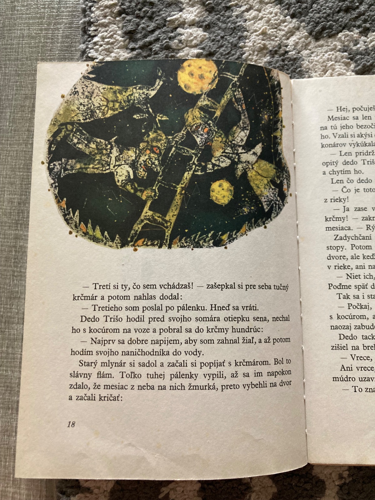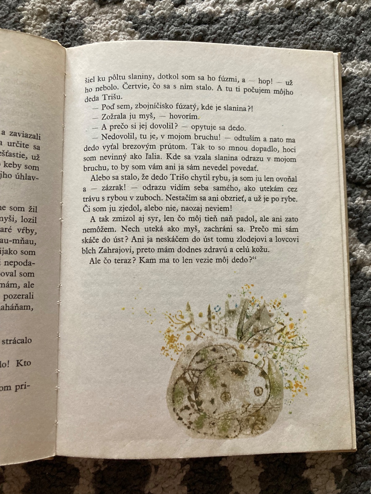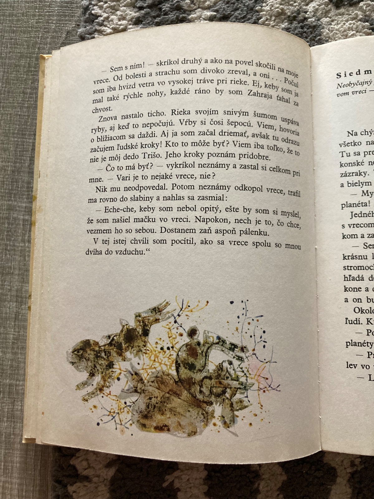 pekný stav, krásna a zachovalá knižka, s krásnymi ilustráciami, prvé vydanie z roku 1967, listy pekné s občasnými fliačikmi, obsahuje pečiatky a vpisy perom pri pečiatkach, obal je mierne opotrebovaný s napísaným číslom a pečiatkou vpredu, v tomto vydaní vyšla v náklade len 9000 ks